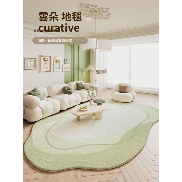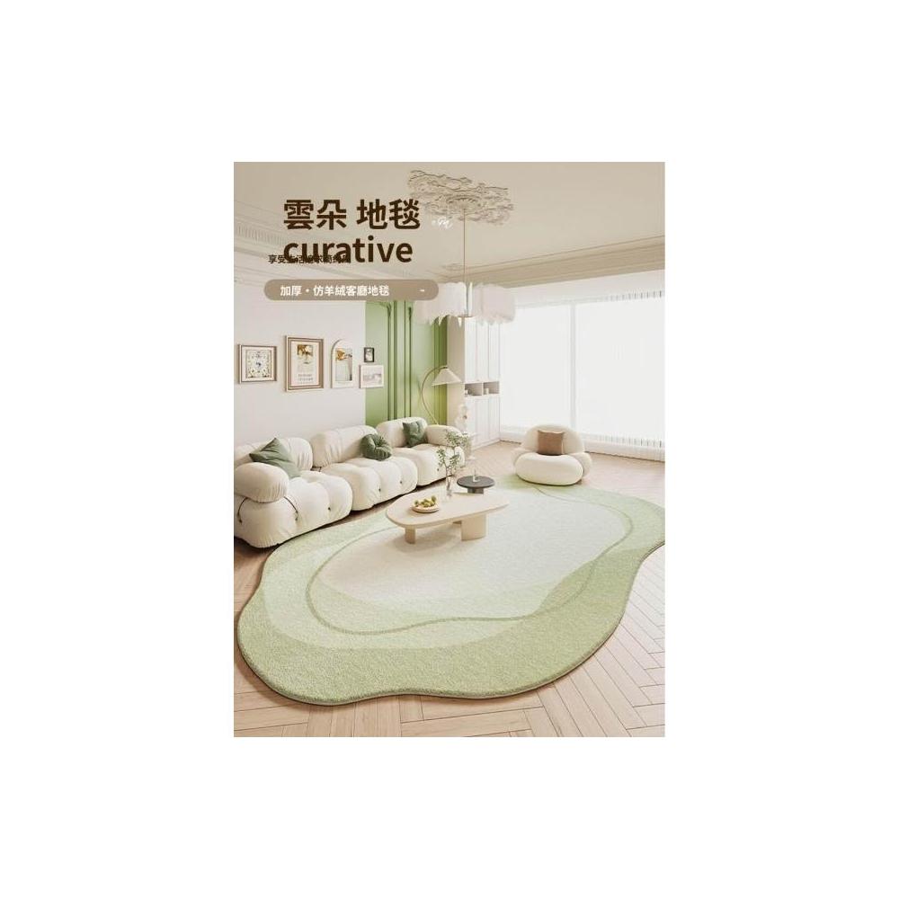 綠色地毯客廳異形家用免洗墊新款加厚仿羊絨不規則臥室床邊地墊子