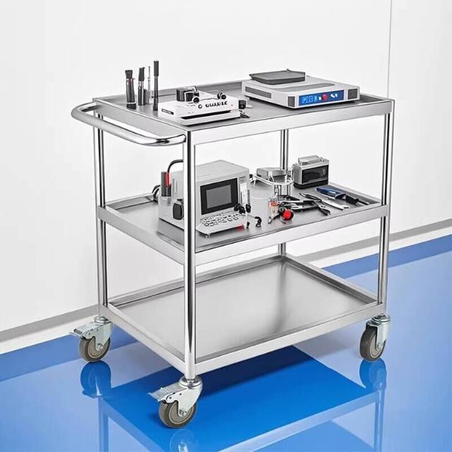 實驗室用雙三層凹槽加厚304不銹鋼儀器小推車倉儲物料分揀手推車