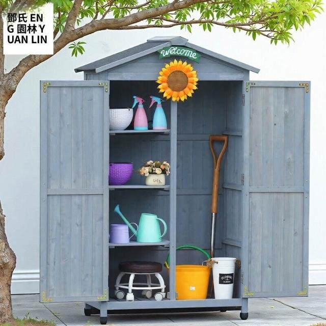 戶外實木工具房儲物櫃子庭院防雨防曬花園藝室外幼兒園雜物收納箱