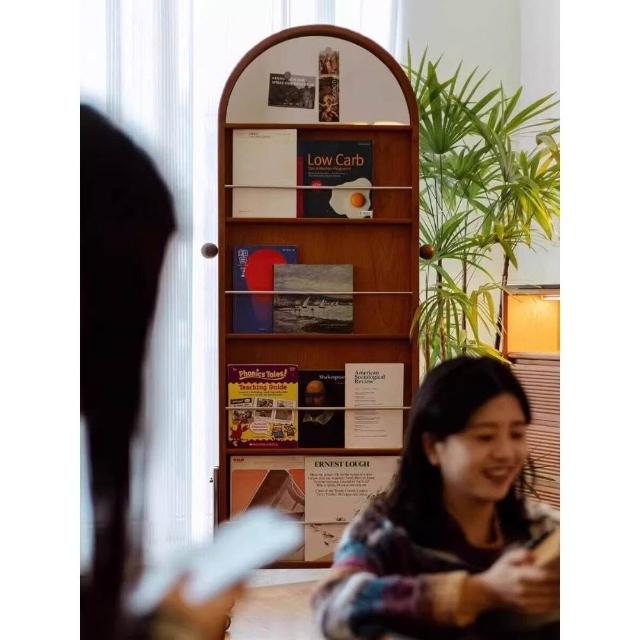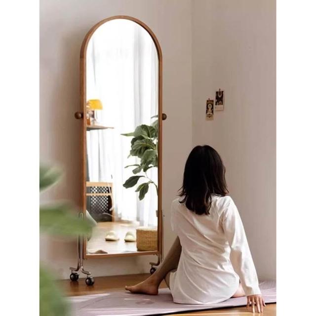 可旋轉全身鏡雜誌書架復中古風落地移動家用穿衣鏡子一體置物實木