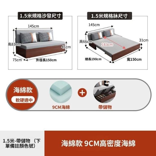 沙發床兩用客廳多功能雙人單人簡約臥室伸縮小戶型網紅實木折疊床