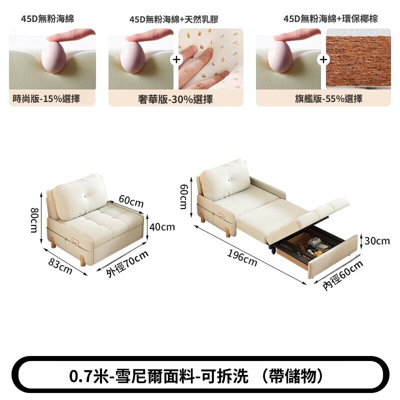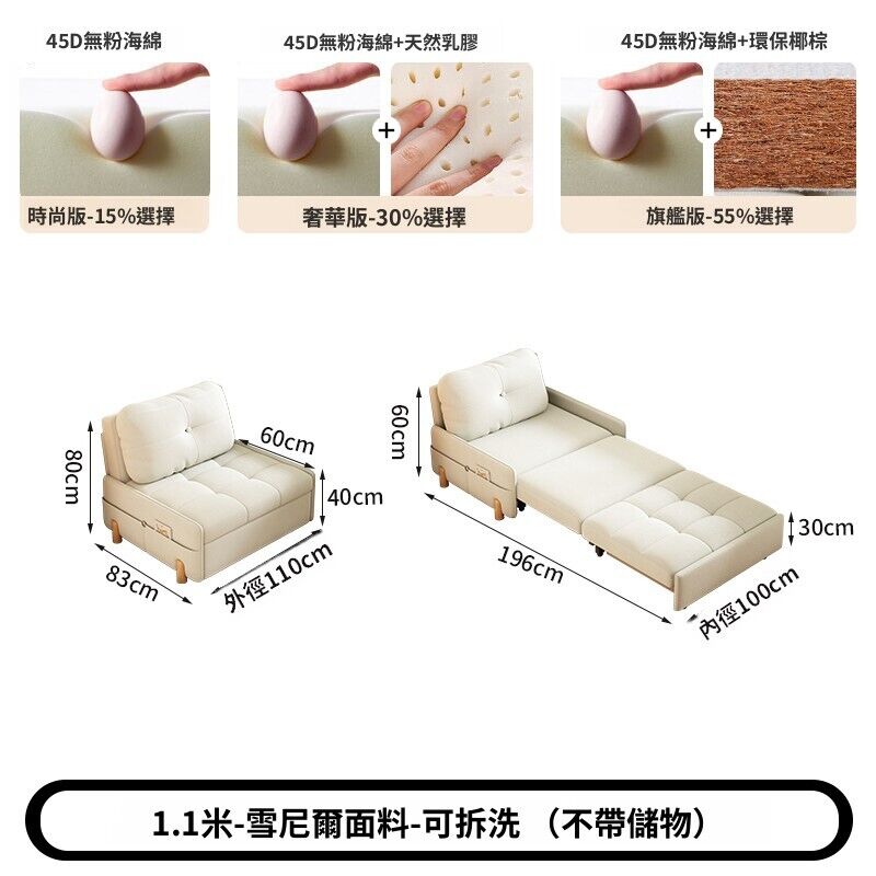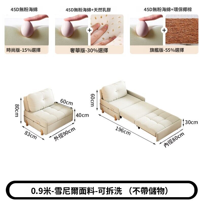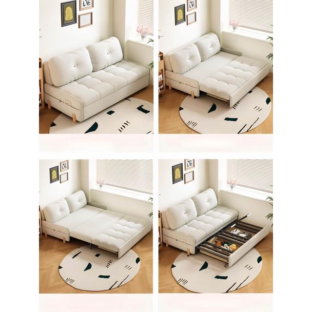 奶油風無扶手沙發床折疊兩用2026新款客廳網紅小戶型單人伸縮沙發
