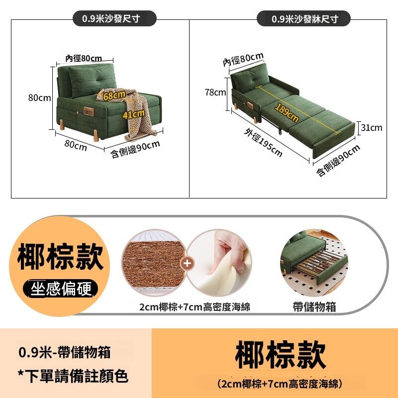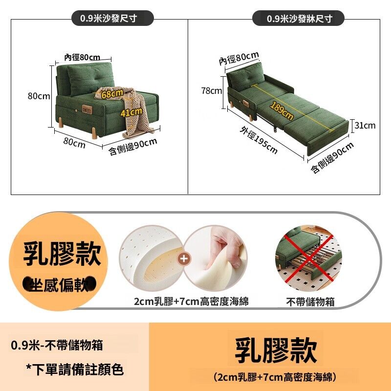 燈芯絨可折疊沙發床小戶型客廳書房兩用現代簡約單人雙人伸縮沙發