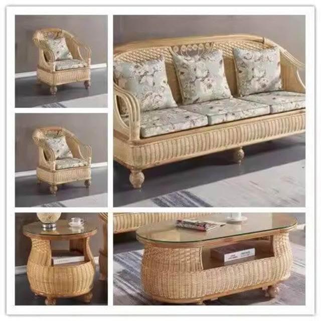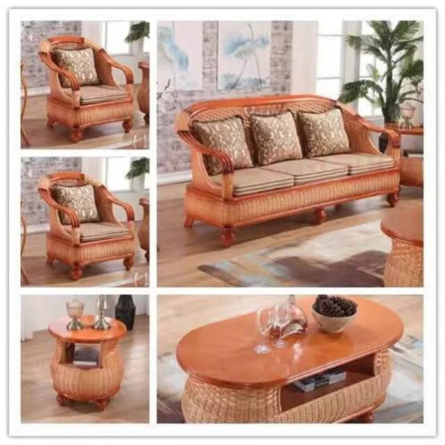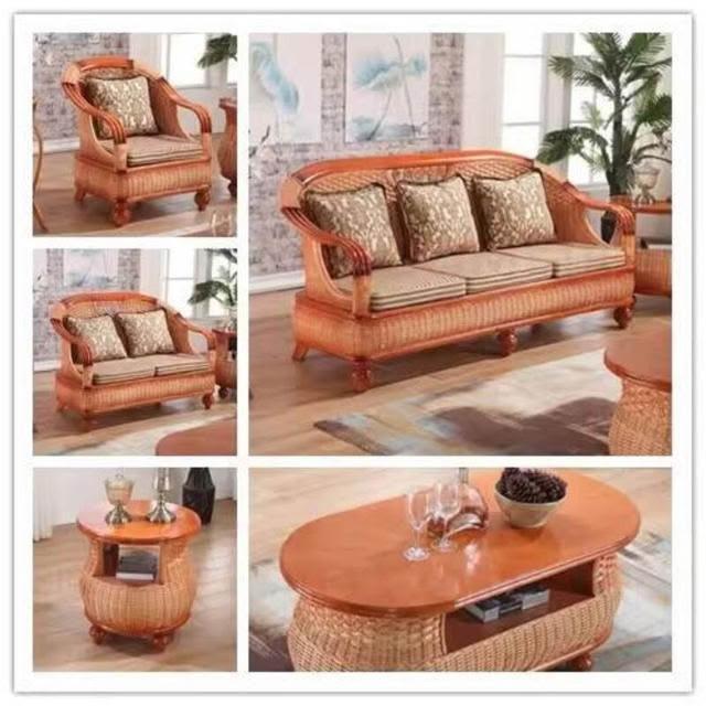 藤沙發三人客廳天然真藤家具組合實木藤編沙發五件套藤椅休閑沙發