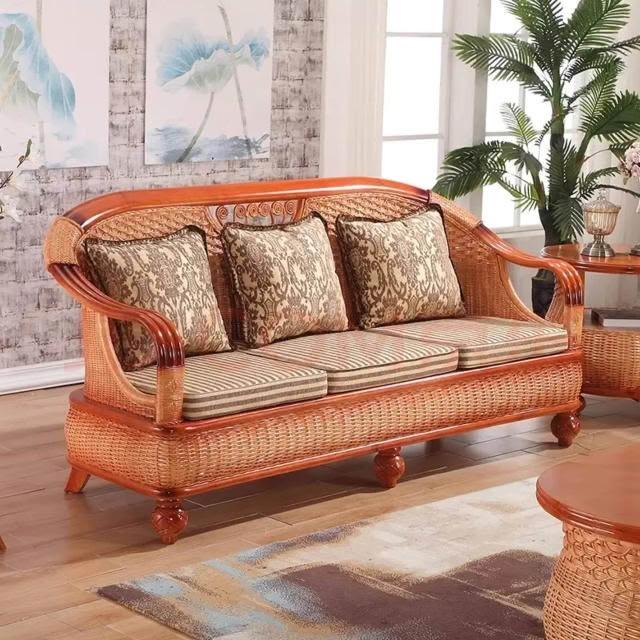 藤沙發三人客廳天然真藤家具組合實木藤編沙發五件套藤椅休閑沙發