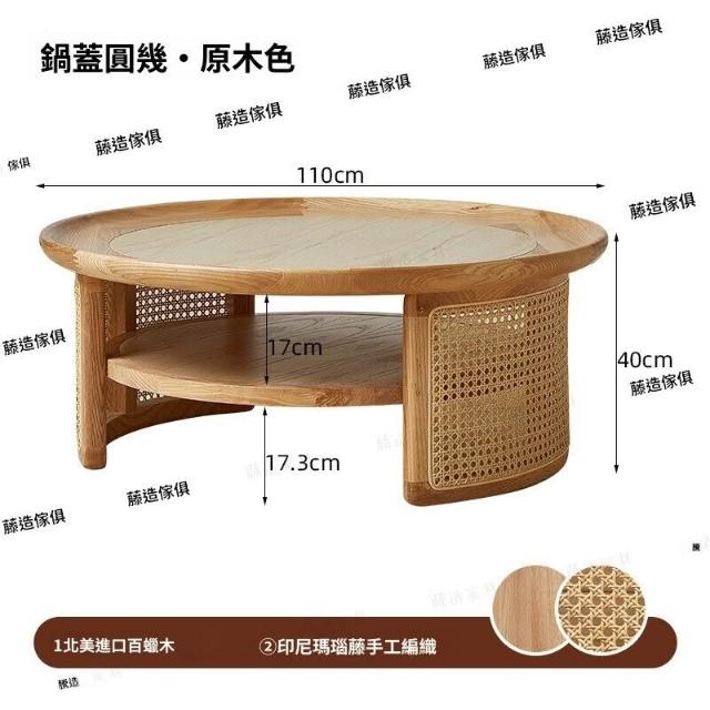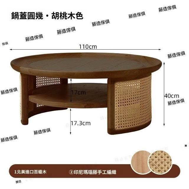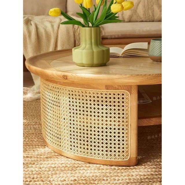 侘寂風實木圓茶幾日式榻榻米小戶型藤編茶桌客廳家用圓形民宿原木