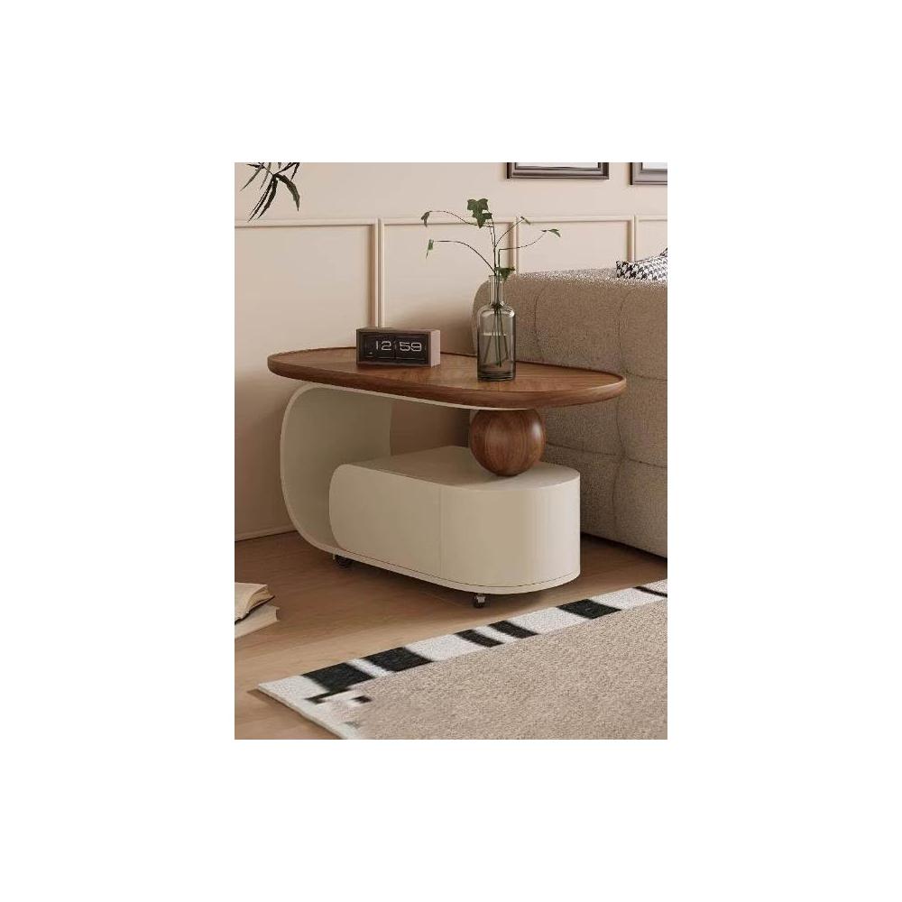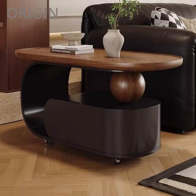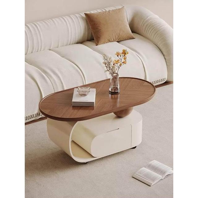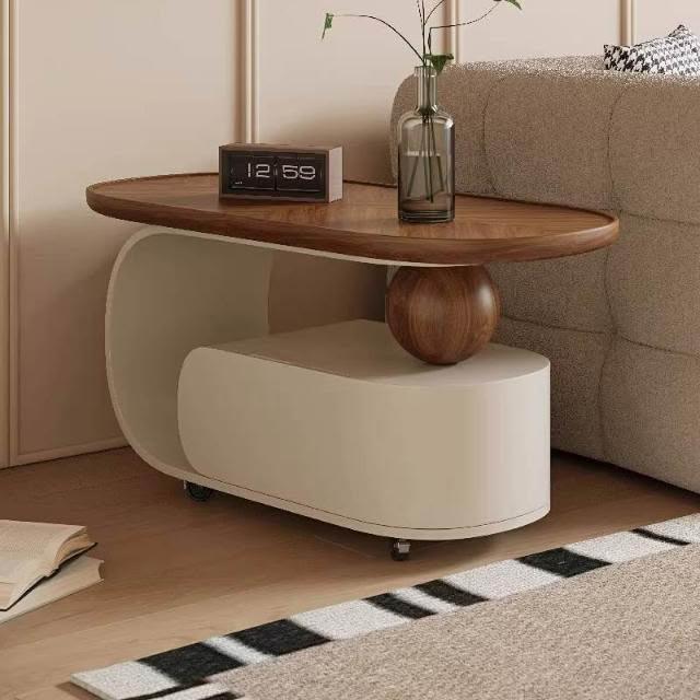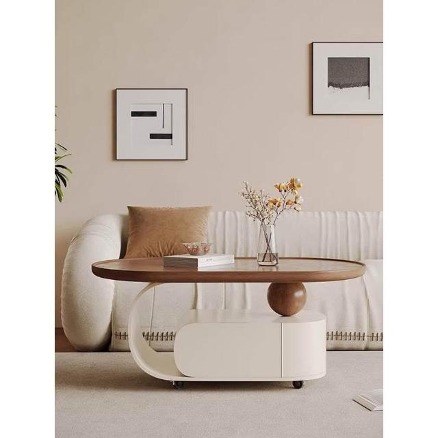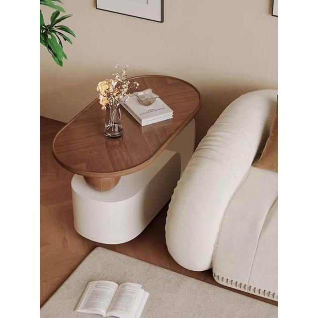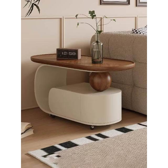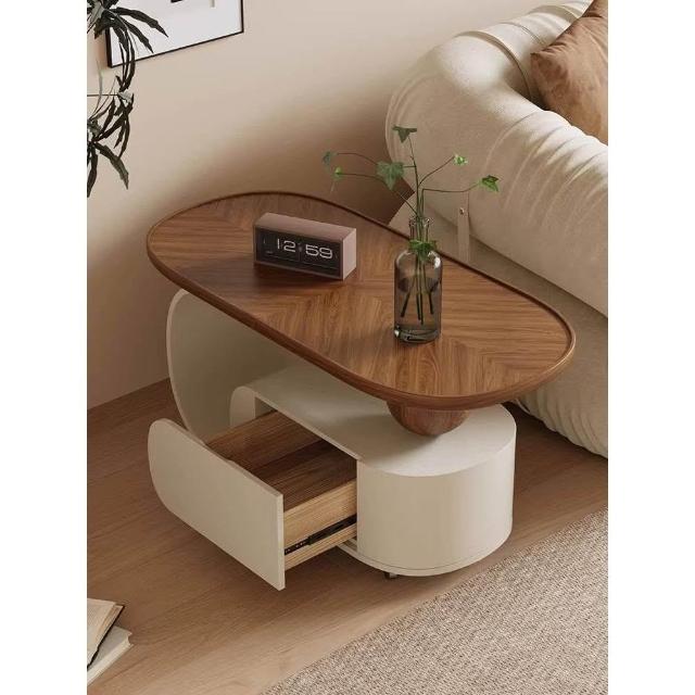 中古風可移動茶幾奶油風侘寂創意網紅橢圓形茶桌復古家用推車邊幾