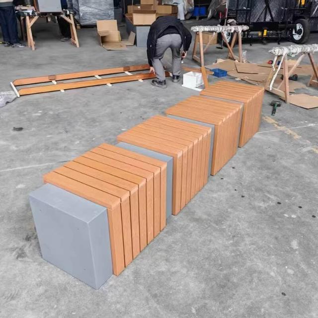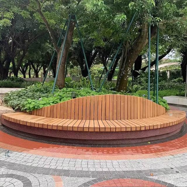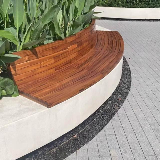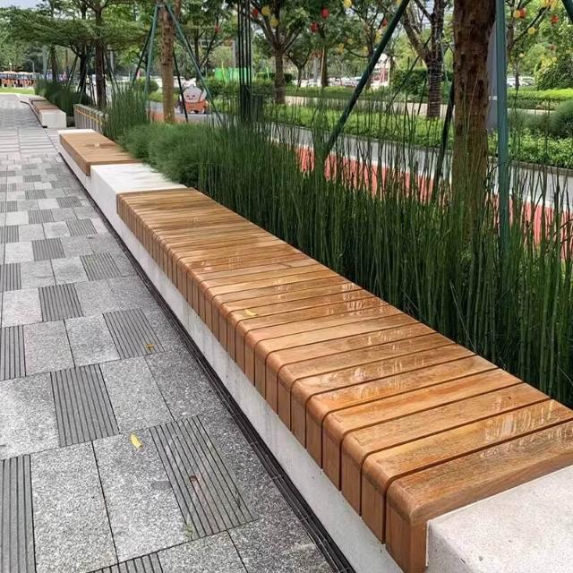 戶外實木坐凳石板座椅菠蘿格木室外長椅公園椅定製廣場休閑坐椅