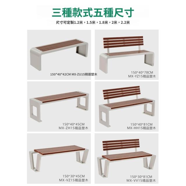 公園椅戶外長椅室外庭院學校廣場休閑靠背防腐木塑木不銹鋼長條凳
