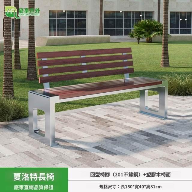 公園椅戶外長椅室外庭院學校廣場休閑靠背防腐木塑木不銹鋼長條凳