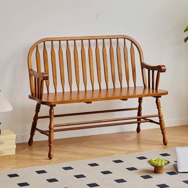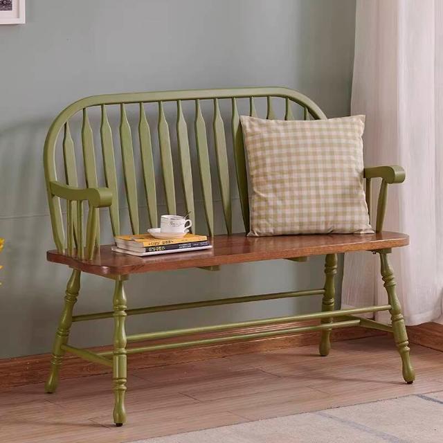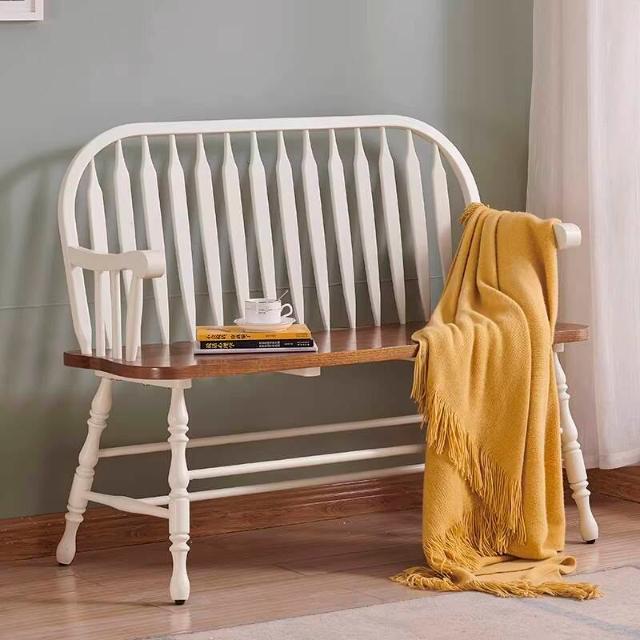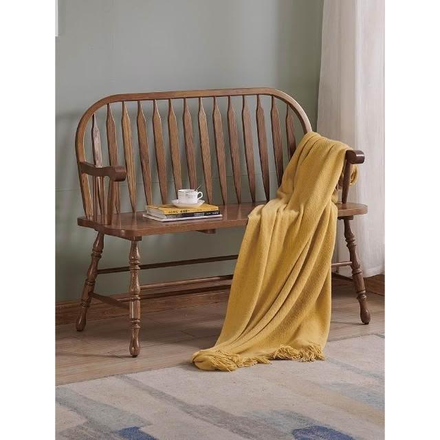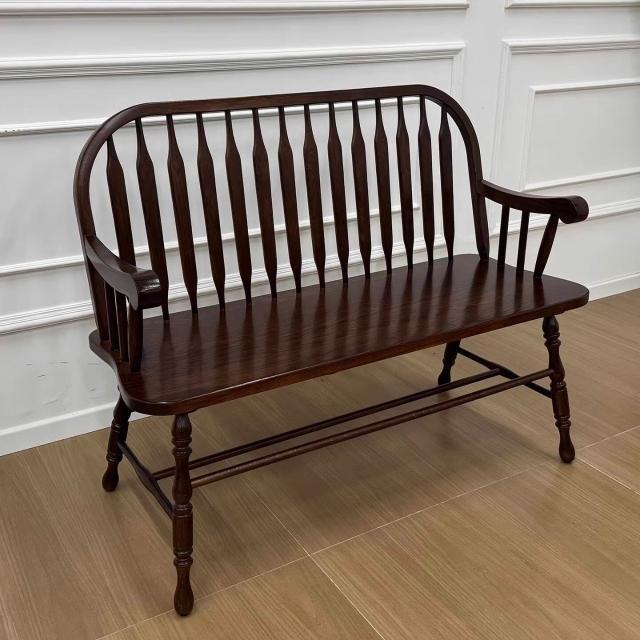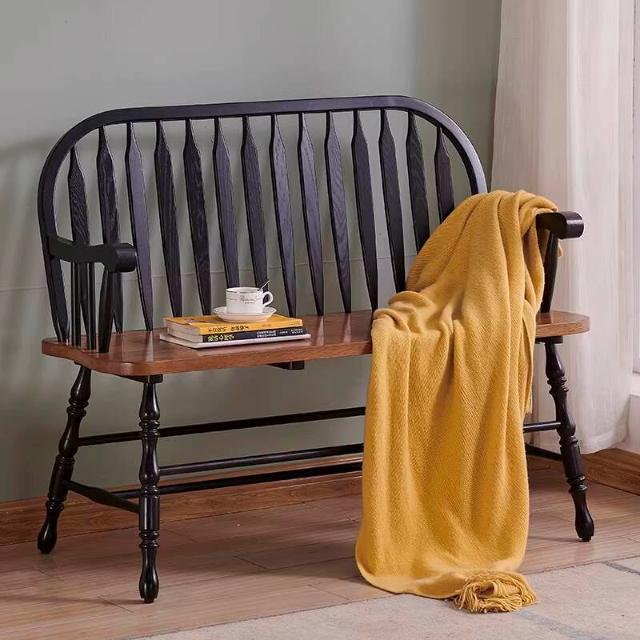 美式實木家用凳子帶靠背椅子餐椅長條餐凳長椅長凳陽臺復古雙人椅