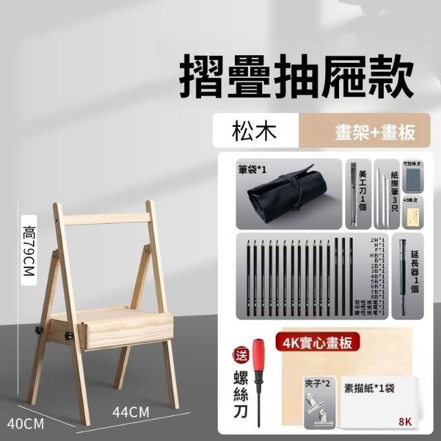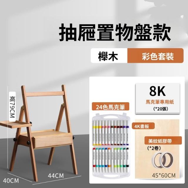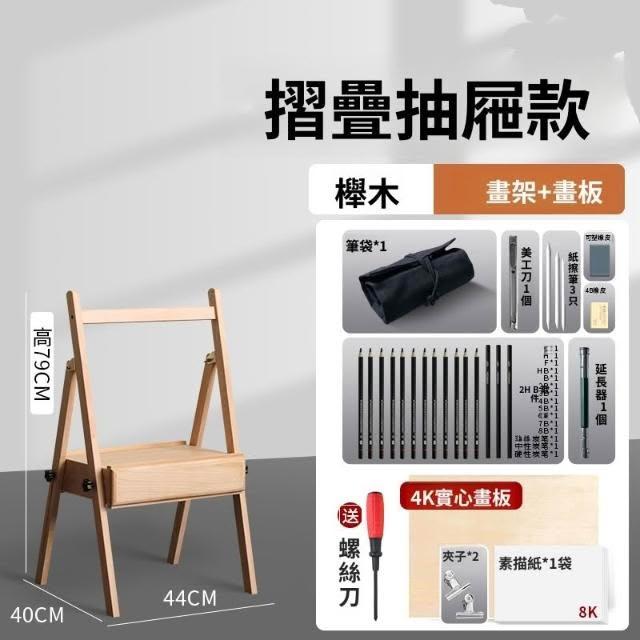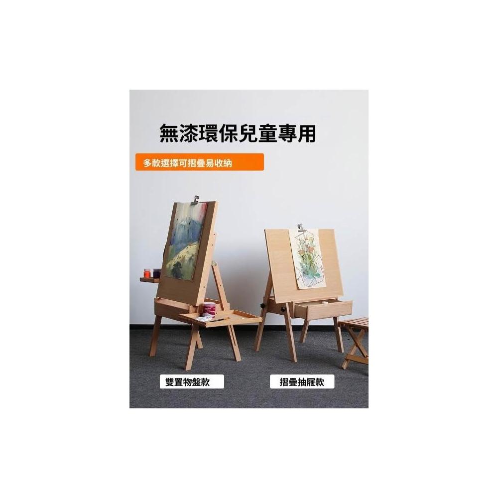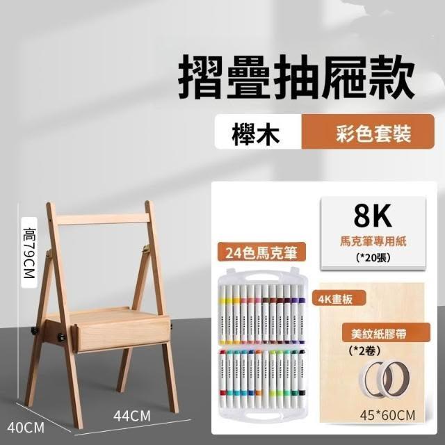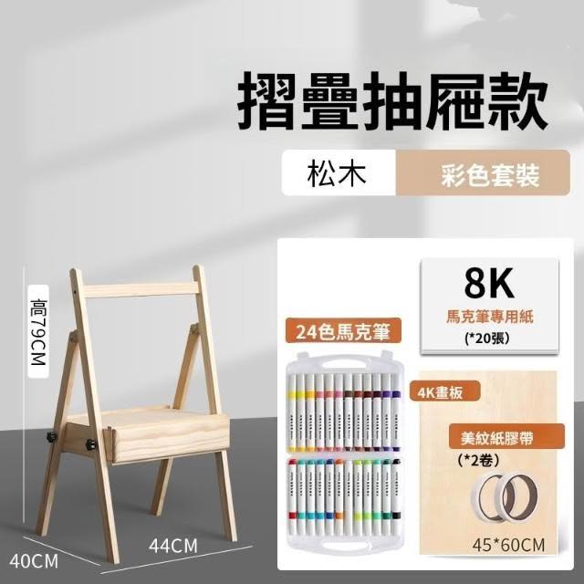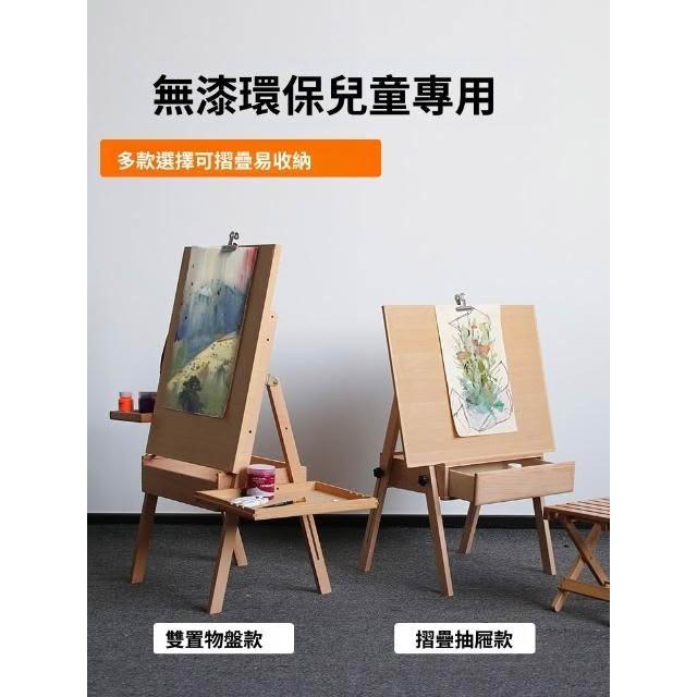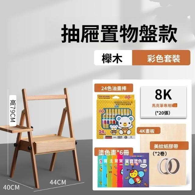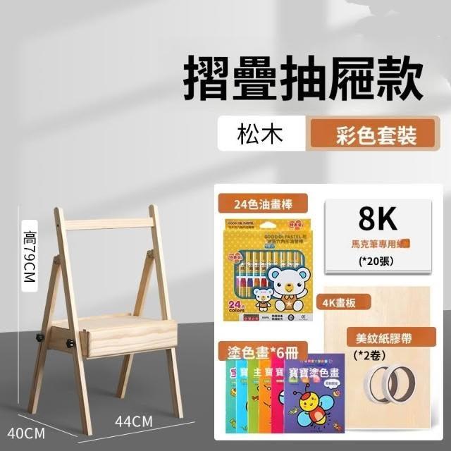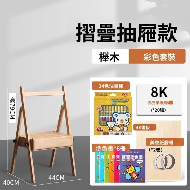 兒童抽屜畫架家用可折疊4K素描畫板油畫棒馬克筆套裝環保無毒榉木實木繪畫架0-10歲小朋友禮物初學者專用架子
