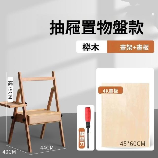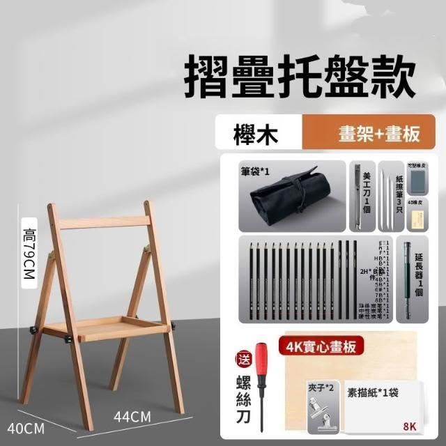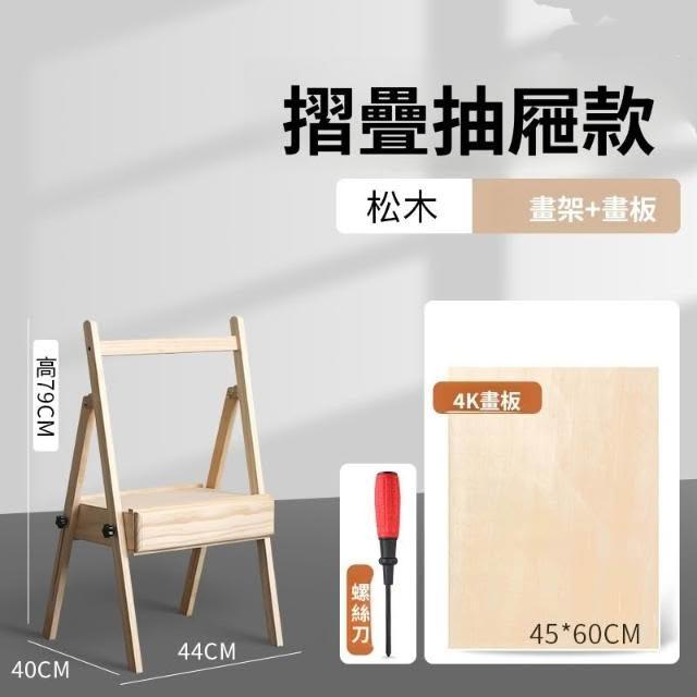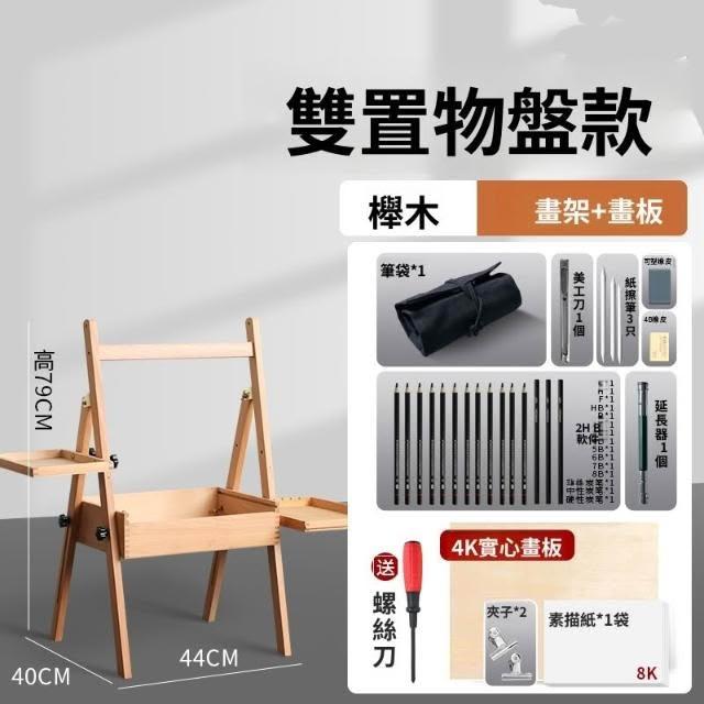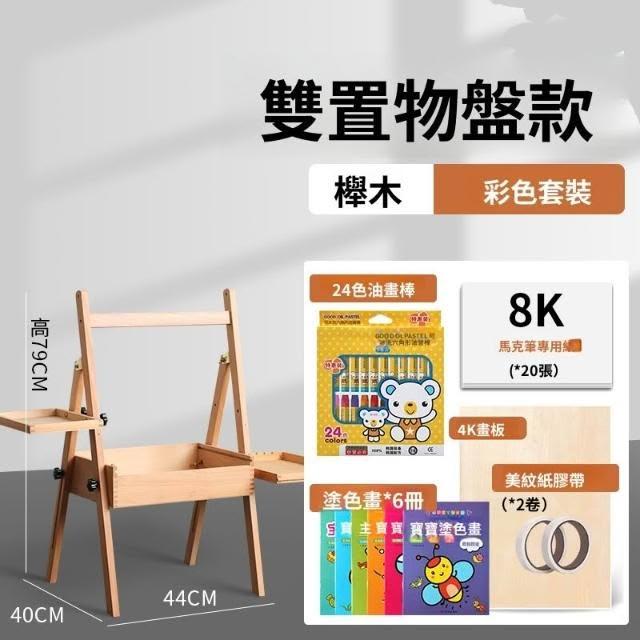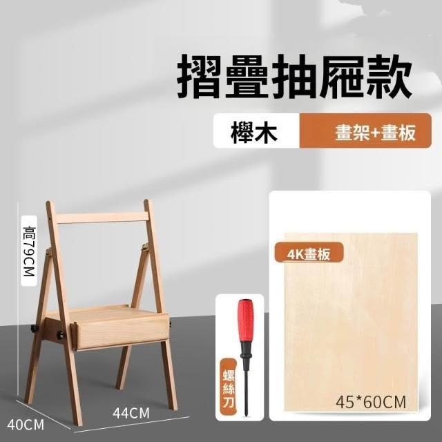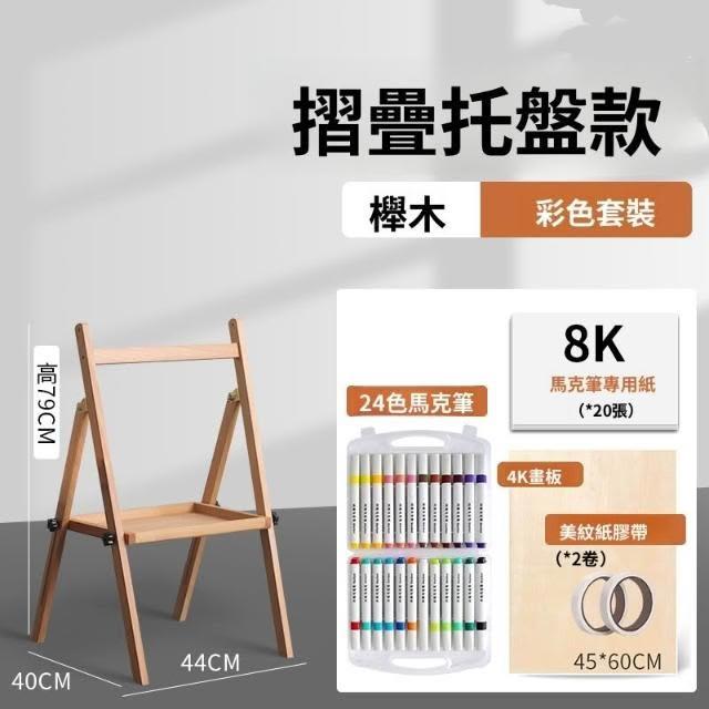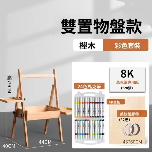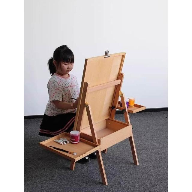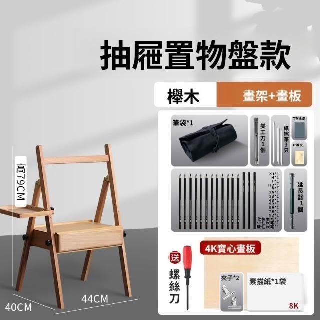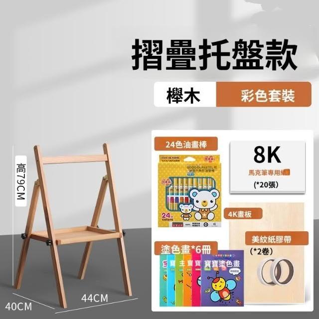 兒童抽屜畫架家用可折疊4K素描畫板油畫棒馬克筆套裝環保無毒榉木實木繪畫架0-10歲小朋友禮物初學者專用架子