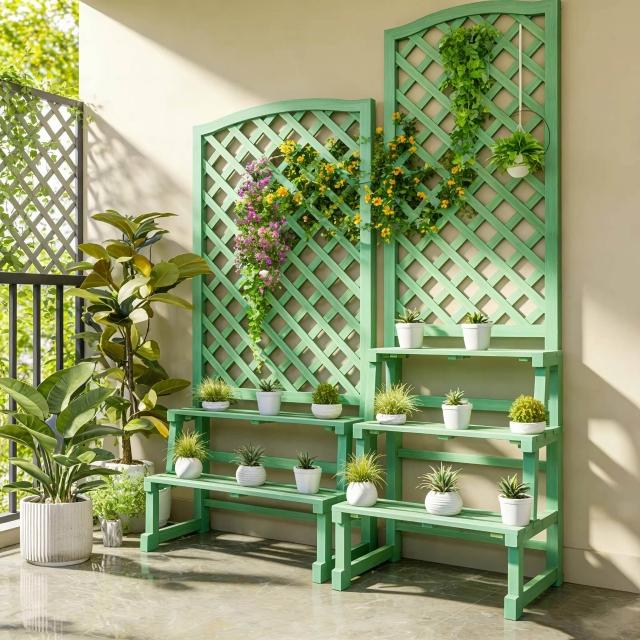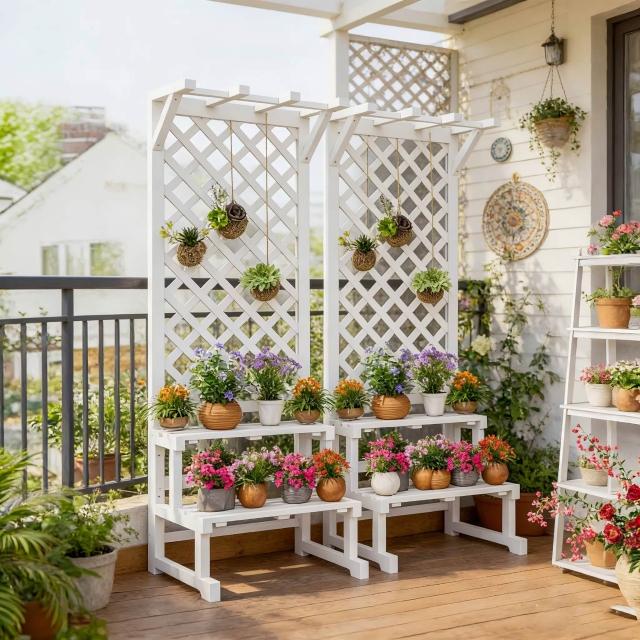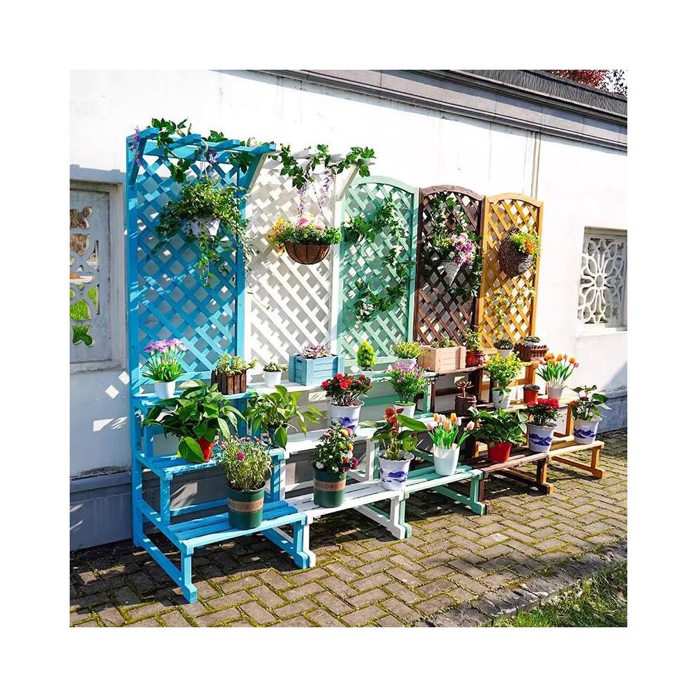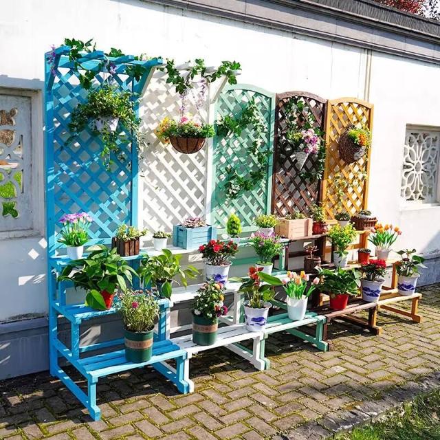 防腐木花架實木花盆架子戶外網格陽臺庭院層架隔斷花箱爬藤置物架