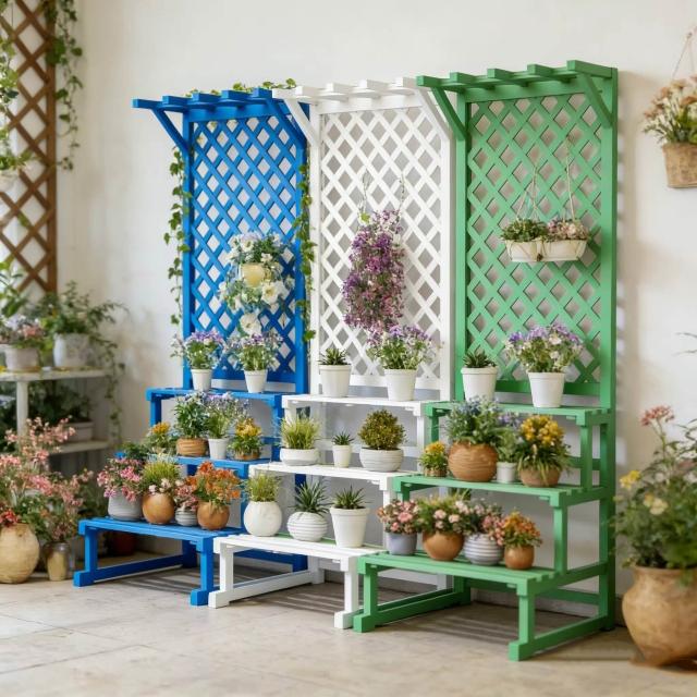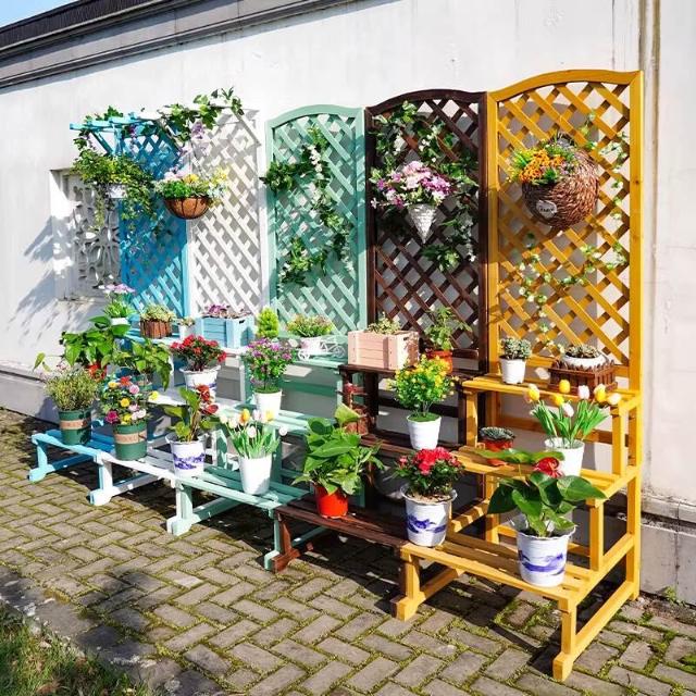 防腐木花架實木花盆架子戶外網格陽臺庭院層架隔斷花箱爬藤置物架