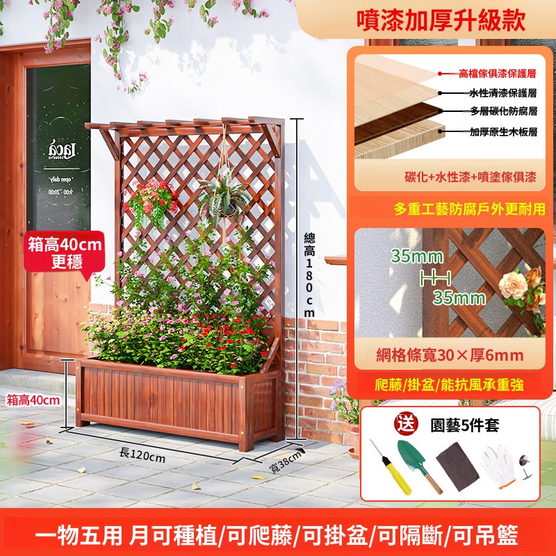 防腐木柵欄屏風隔斷百葉花架庭院陽臺花箱爬藤架護欄戶外花園遮擋
