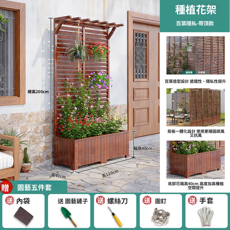 防腐木柵欄屏風隔斷百葉花架庭院陽臺花箱爬藤架護欄戶外花園遮擋