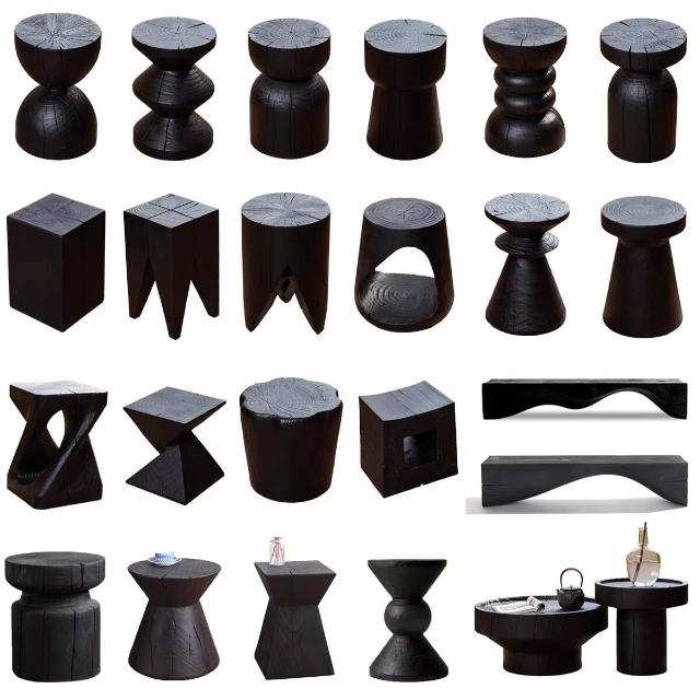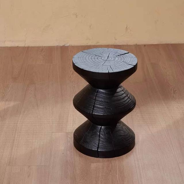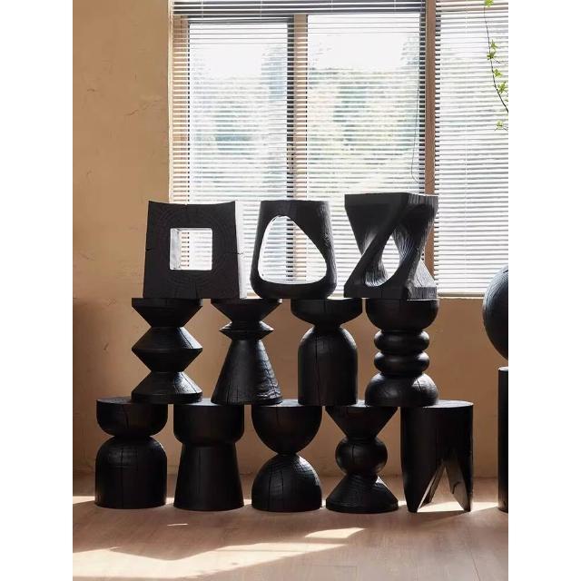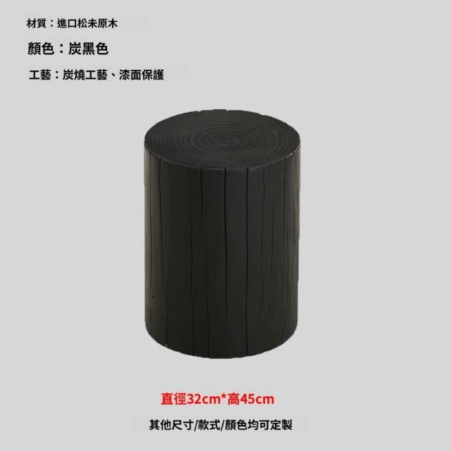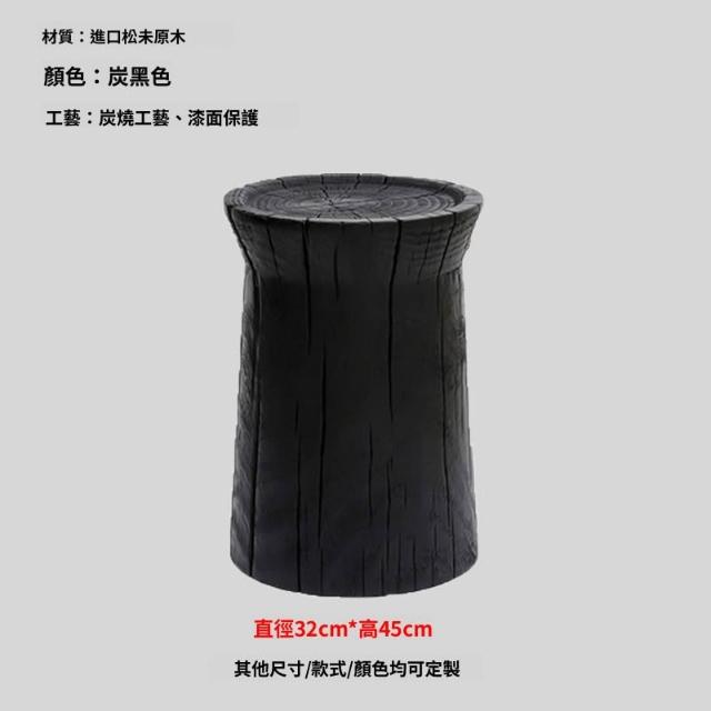 實木墩子碳化黑色北歐原木凳子民宿邊幾木樁擺件根雕底座花架矮凳
