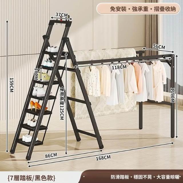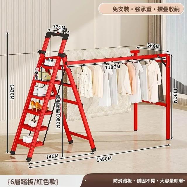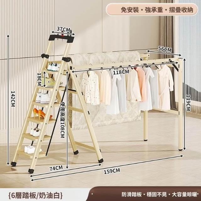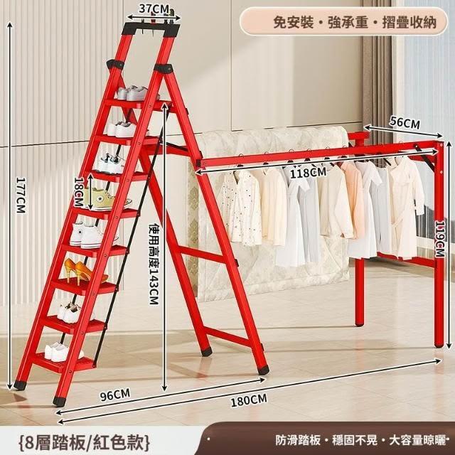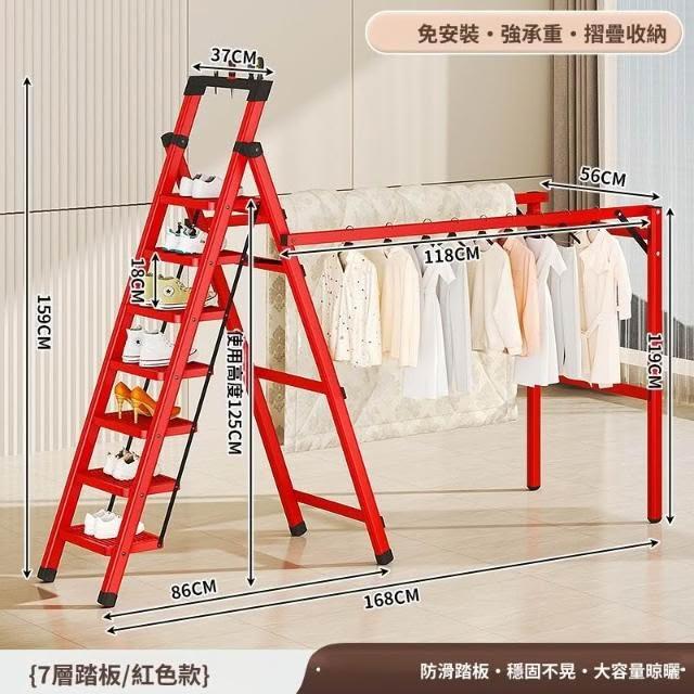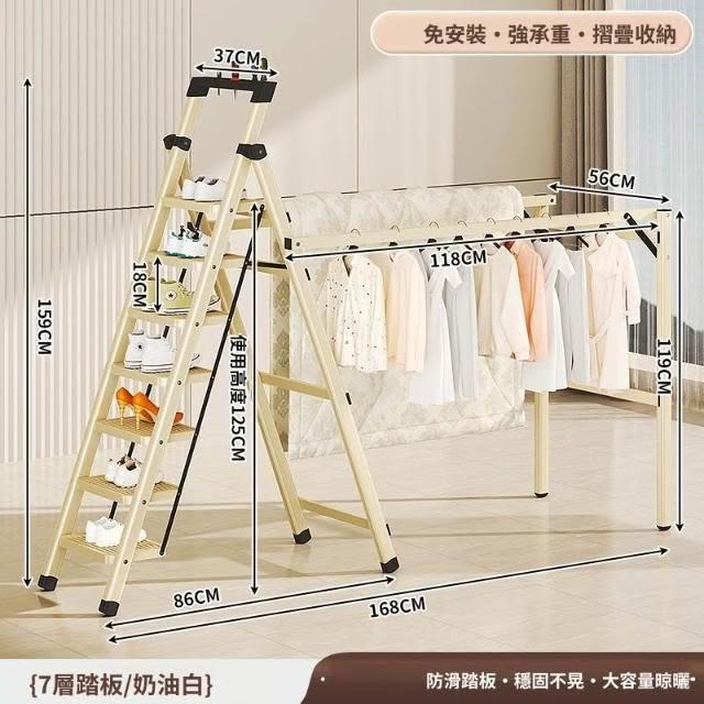 網紅梯子晾衣架家用人字梯固定晾曬被架衣架落地晾曬衣架八步登高