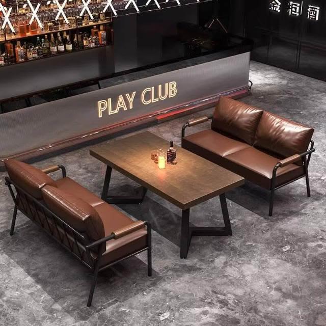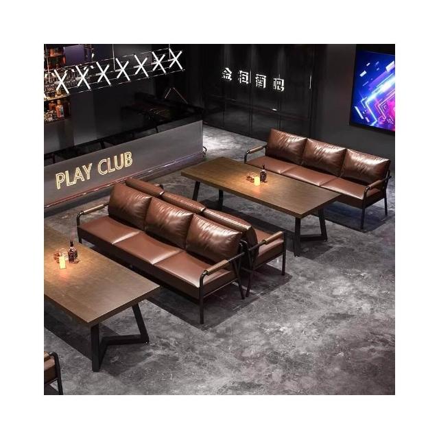 公寓卡座咖啡廳復古實木工業風鐵藝沙發椅休閑酒吧燒烤店桌椅組合