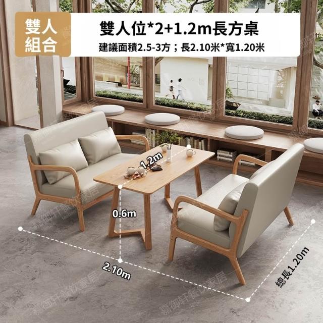 原木色油蠟皮奶茶店咖啡廳桌椅組合酒店民宿休閑洽談接待沙發卡座