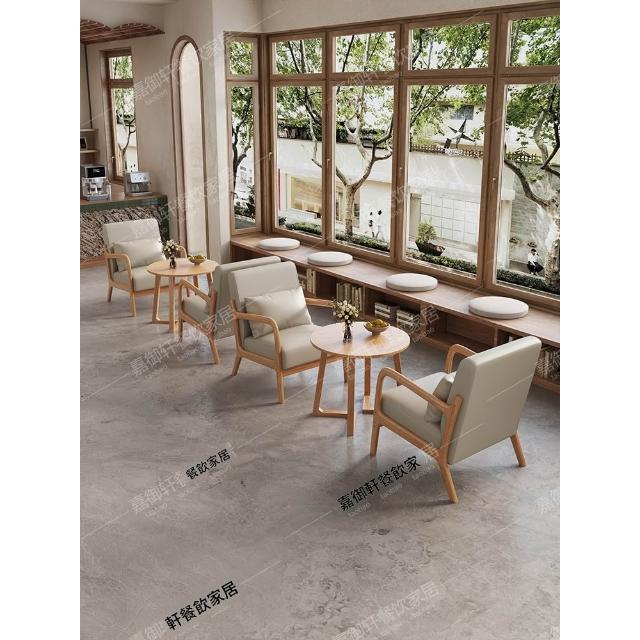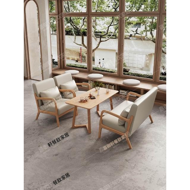 原木色油蠟皮奶茶店咖啡廳桌椅組合酒店民宿休閑洽談接待沙發卡座