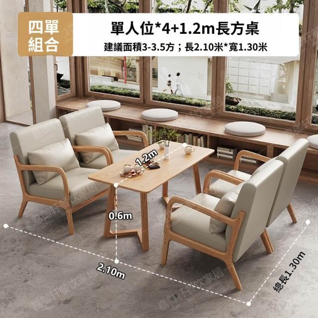 原木色油蠟皮奶茶店咖啡廳桌椅組合酒店民宿休閑洽談接待沙發卡座