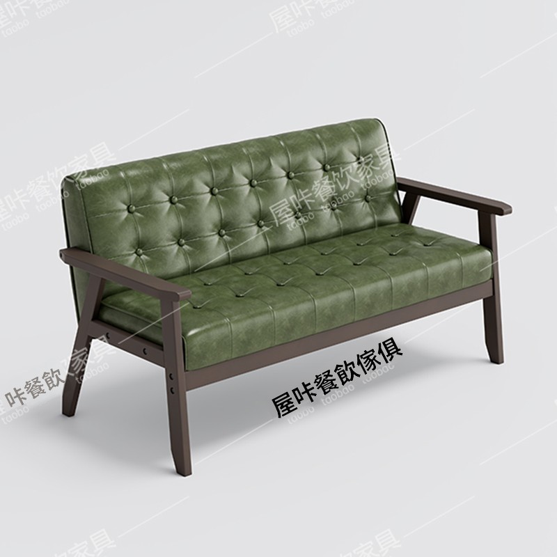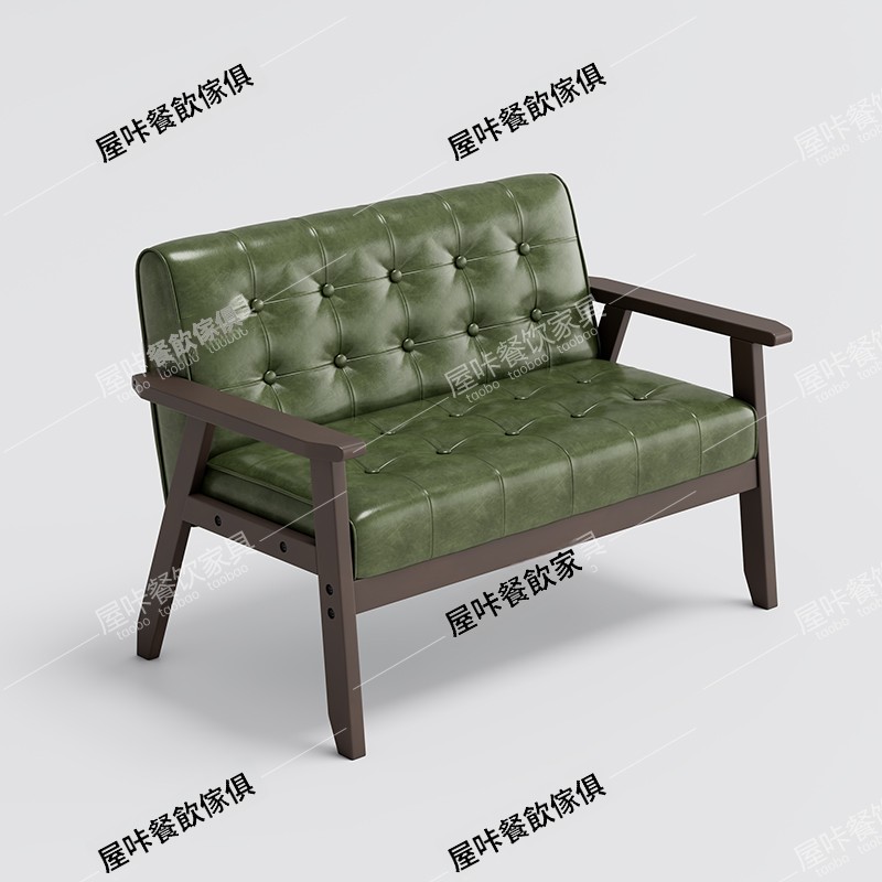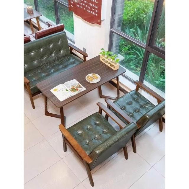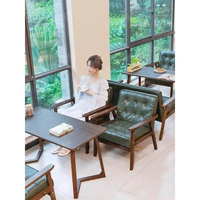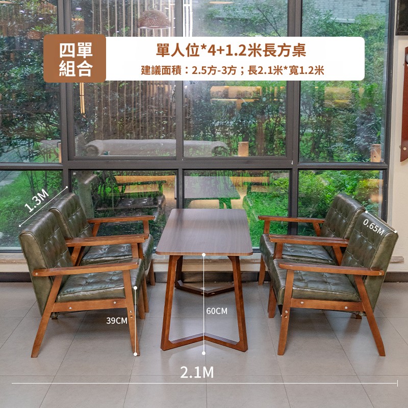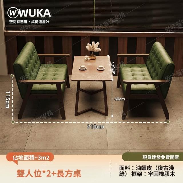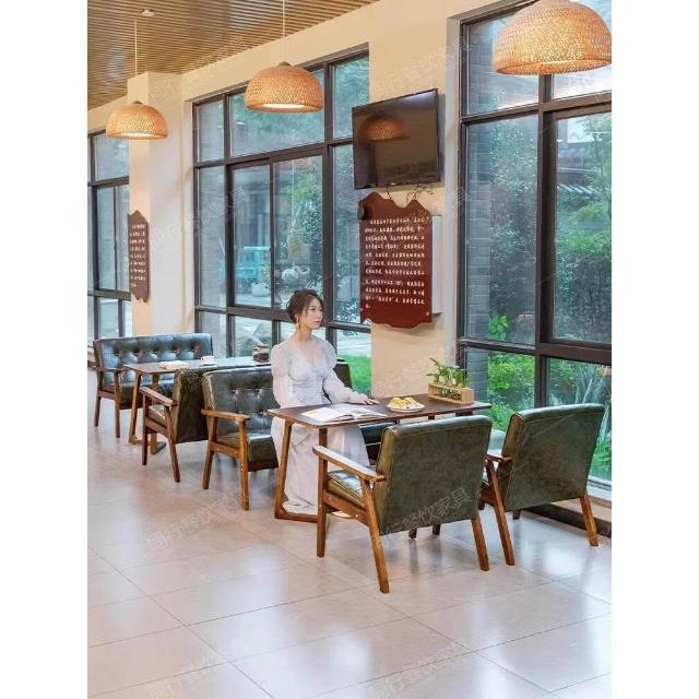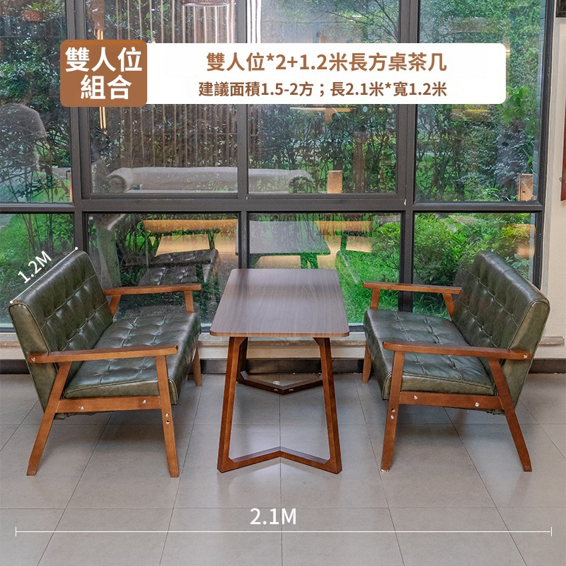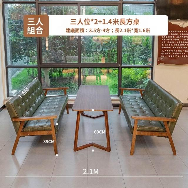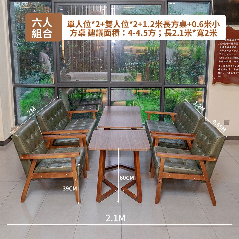 咖啡廳美式復古實木雙人卡座油蠟皮沙發洽談酒吧民宿桌椅組合商用