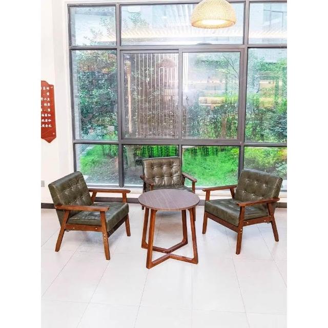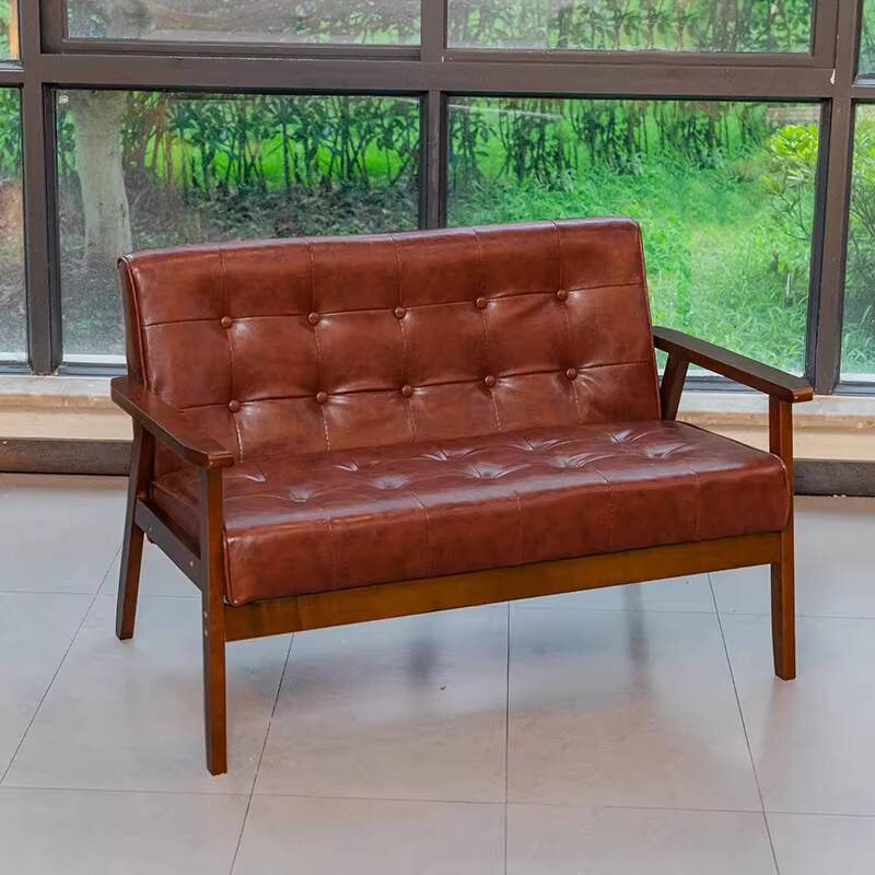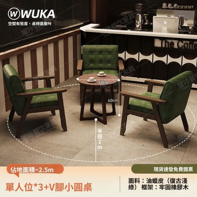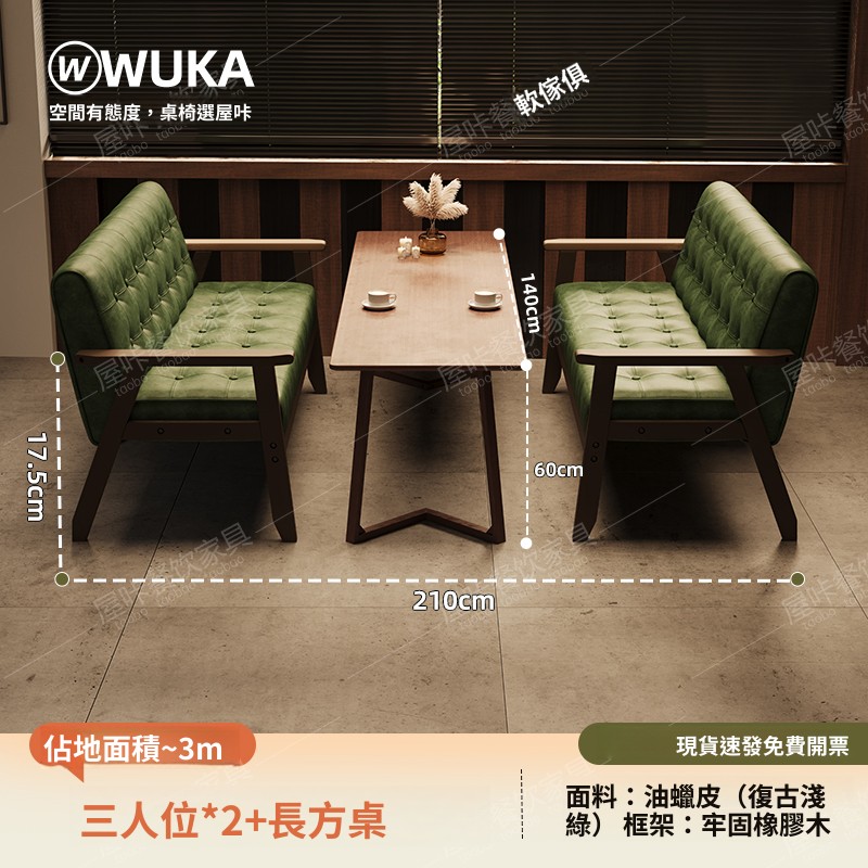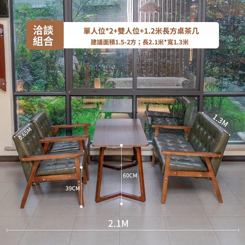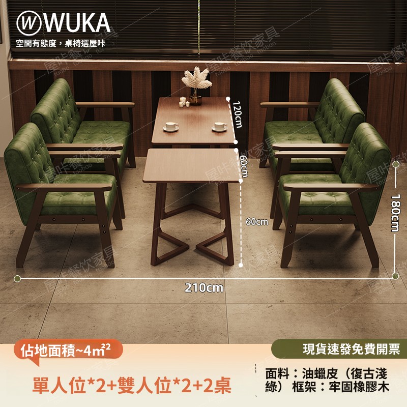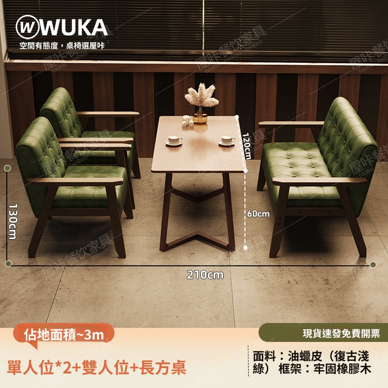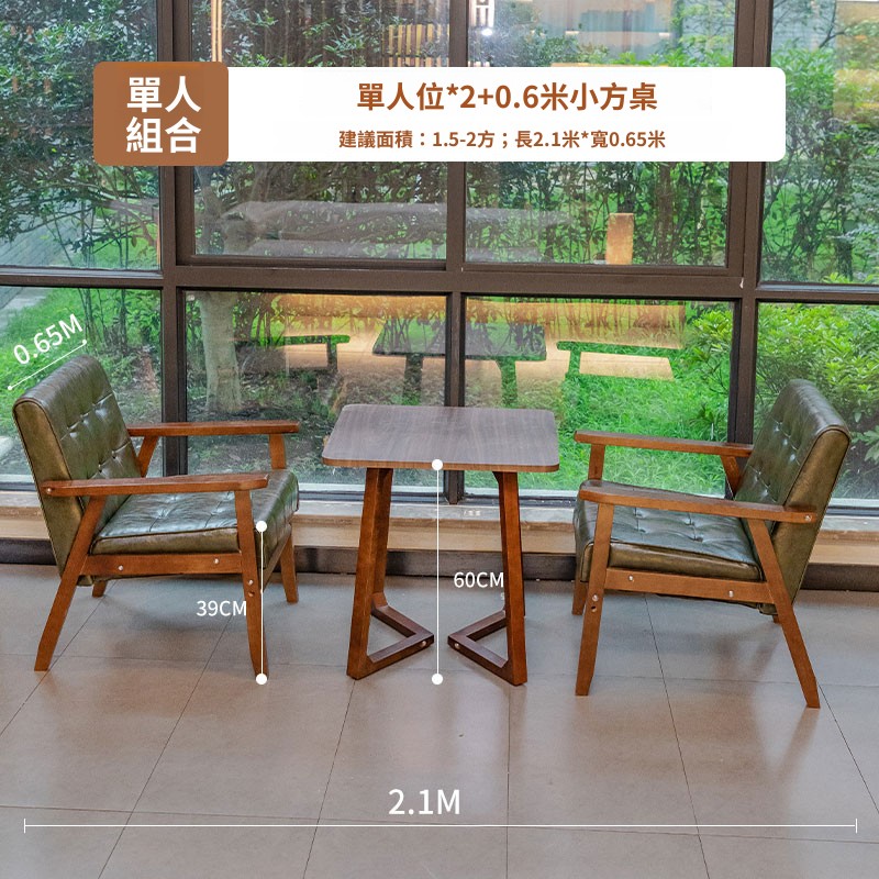 咖啡廳美式復古實木雙人卡座油蠟皮沙發洽談酒吧民宿桌椅組合商用