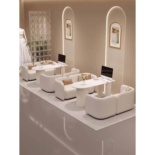 奶油風美容院洽談桌椅組合高檔婚紗店休息區談單桌美甲店卡座沙發