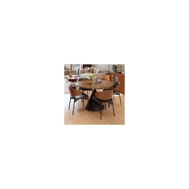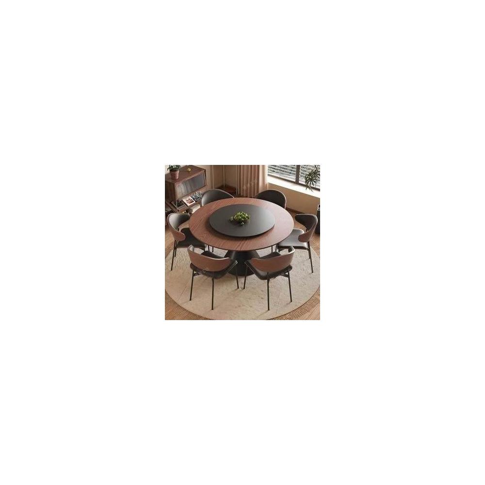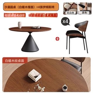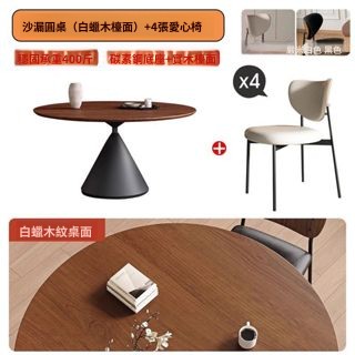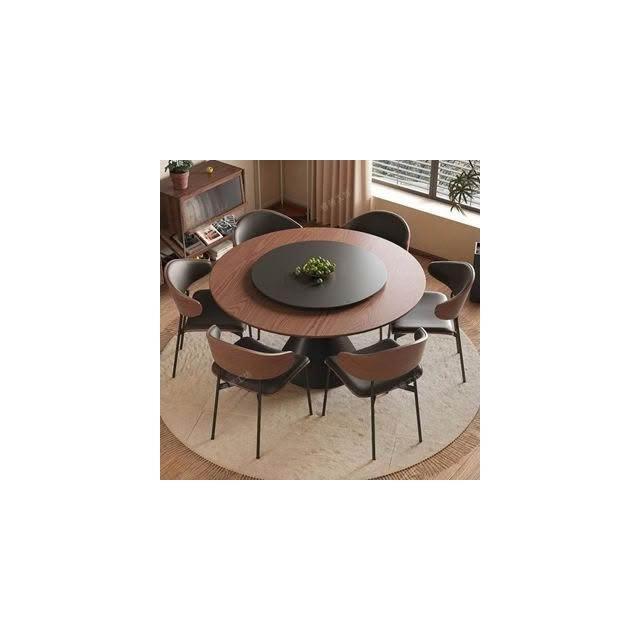 中古風實木餐桌椅組合碳素鋼圓形桌輕奢圓桌帶轉盤家用小戶型餐桌