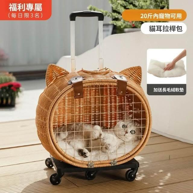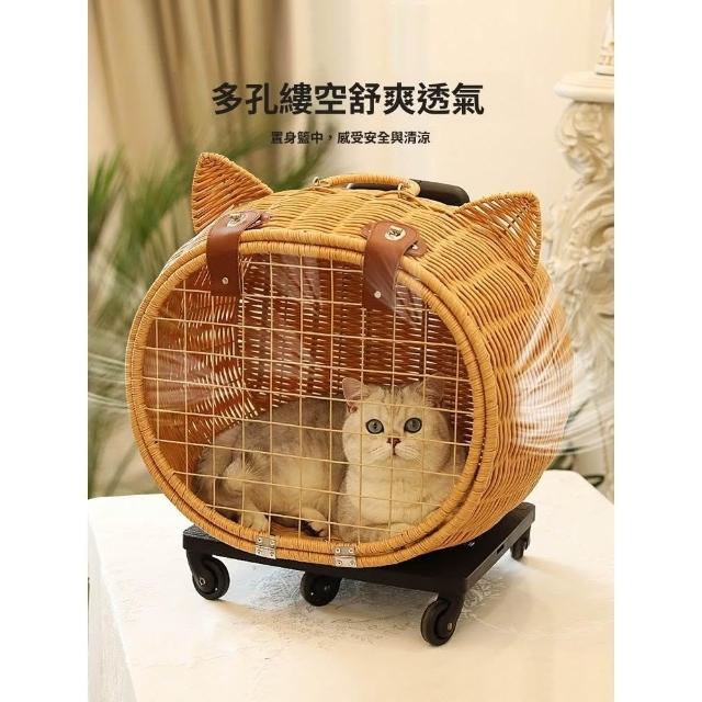 藤編拉桿箱貓包外出便攜貓推車貓籠子寵物用車載行李箱貓咪小推車