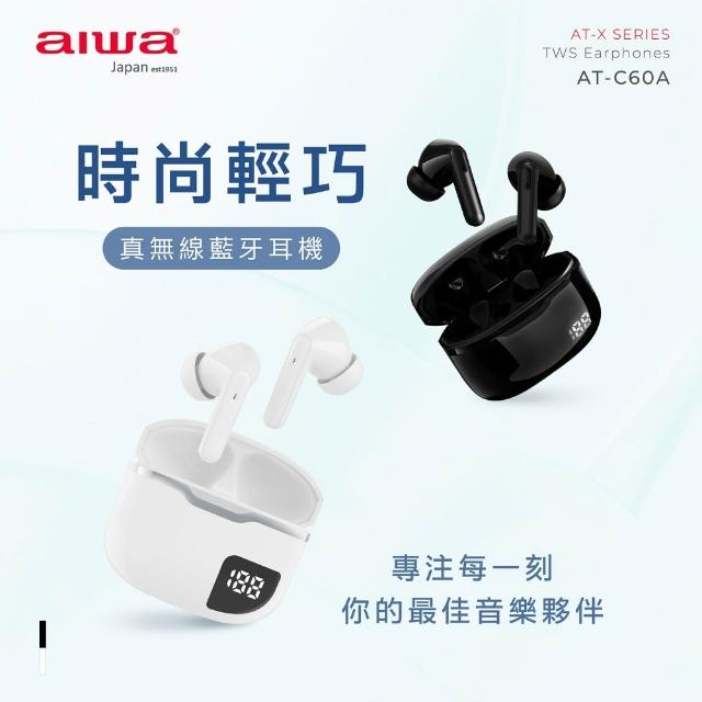 AIWA 愛華LED螢幕 真無線藍牙耳機 (AT-C60A) 黑色/白色
