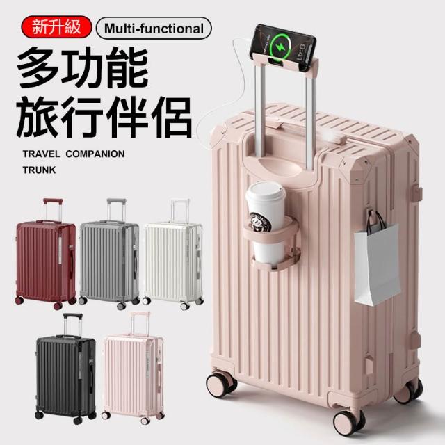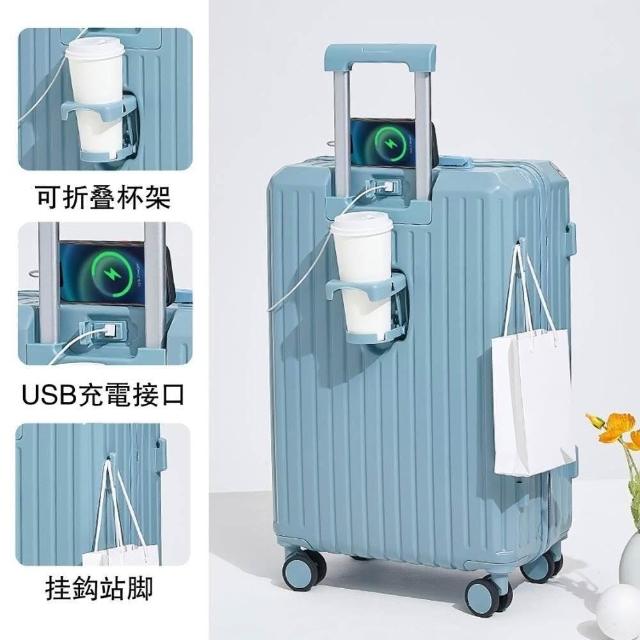恩赫生活 多功能行李箱 專用包裝 USB充電 摺疊杯架 掛勾設計 萬向輪 行李箱 登機箱 旅行箱