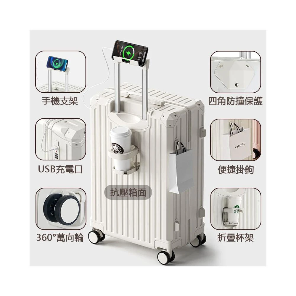 恩赫生活 多功能行李箱 專用包裝 USB充電 摺疊杯架 掛勾設計 萬向輪 行李箱 登機箱 旅行箱