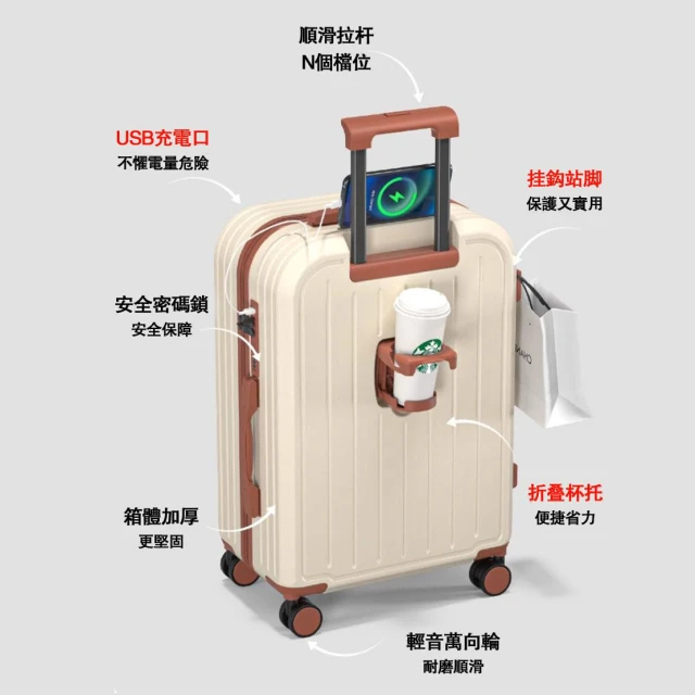 恩赫生活 多功能行李箱 專用包裝 USB充電 摺疊杯架 掛勾設計 萬向輪 行李箱 登機箱 旅行箱 20吋/24吋/ 28吋