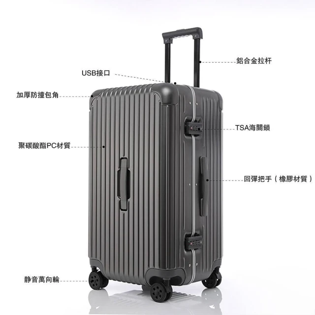 恩赫生活 鋁框行李箱 旅行箱 拉桿箱 胖胖箱 扣式閉合 24吋/28吋/32吋 行李箱 大容量旅行箱