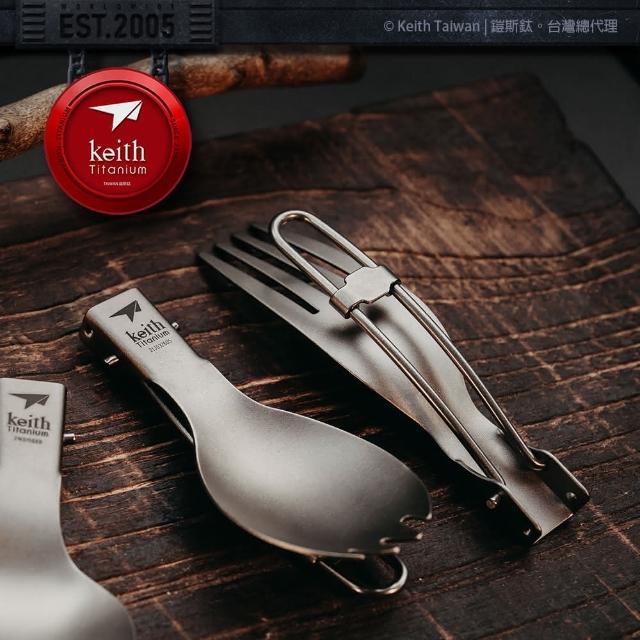 Keith鎧斯鈦折疊餐具 附收納袋 ( 全系列 ) 戶外露營登山 輕量多功能 鈦叉匙 摺疊 湯匙 鈦餐具