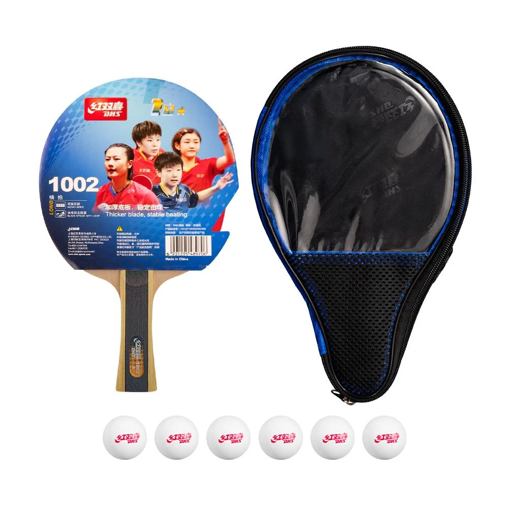 紅雙喜DHS一星級桌球拍H1002 6512雙面膠皮/贈球拍套+6球(乒乓球拍 橫拍 膠皮球拍 負手板)