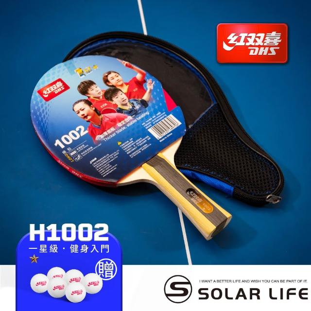 紅雙喜DHS一星級桌球拍H1002 6512雙面膠皮/贈球拍套+6球(乒乓球拍 橫拍 膠皮球拍 負手板)