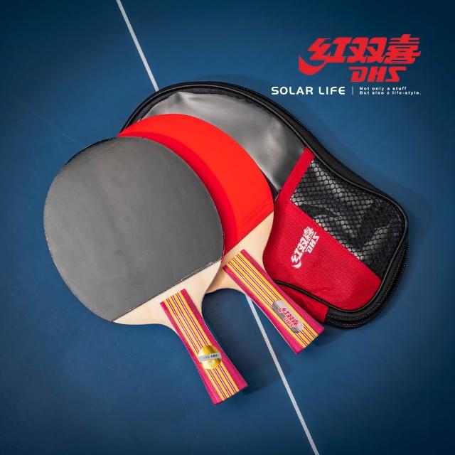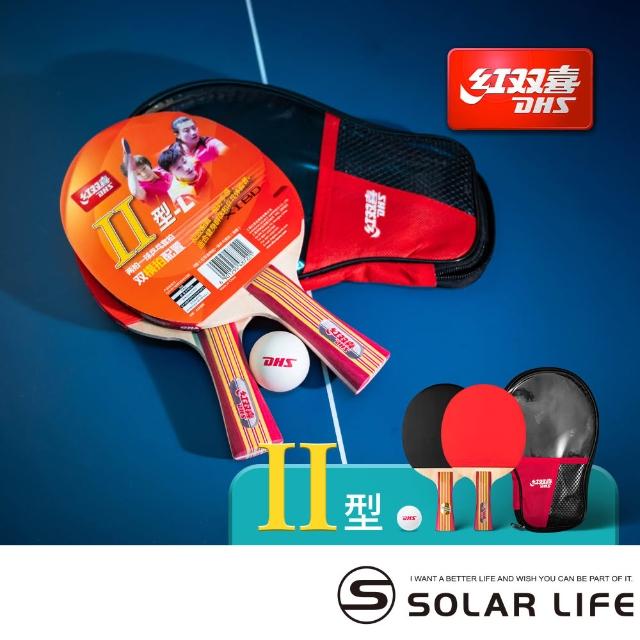 紅雙喜DHS入門II型桌球拍2入組/贈球拍套+球(乒乓球拍 橫拍 膠皮球拍 負手板)