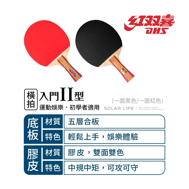 紅雙喜DHS 入門II型桌球拍 乒乓球拍 橫拍 膠皮球拍 負手板 桌球刀板