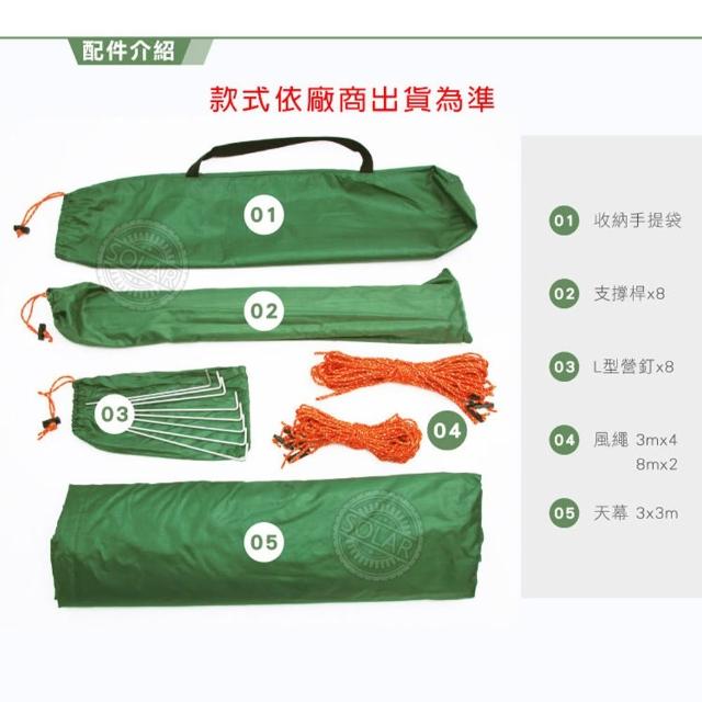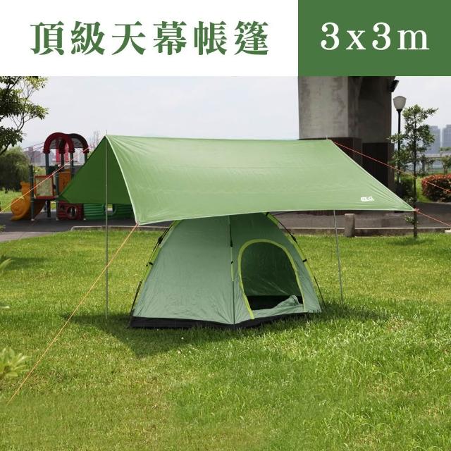 遮陽防水方形天幕帳篷 3 x 3m 贈營柱營釘風繩 戶外露營 天幕 野餐銀膠塗層 抗UV防潮地墊 車邊帳外帳 方型天幕