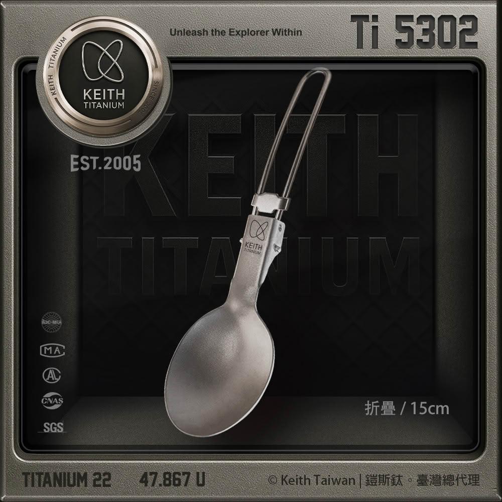 Keith鎧斯鈦折疊湯匙 15cm / Ti5302 摺疊鈦湯匙 鈦金屬圓湯匙 輕量無毒湯勺 環保餐具 露營登山鈦餐具