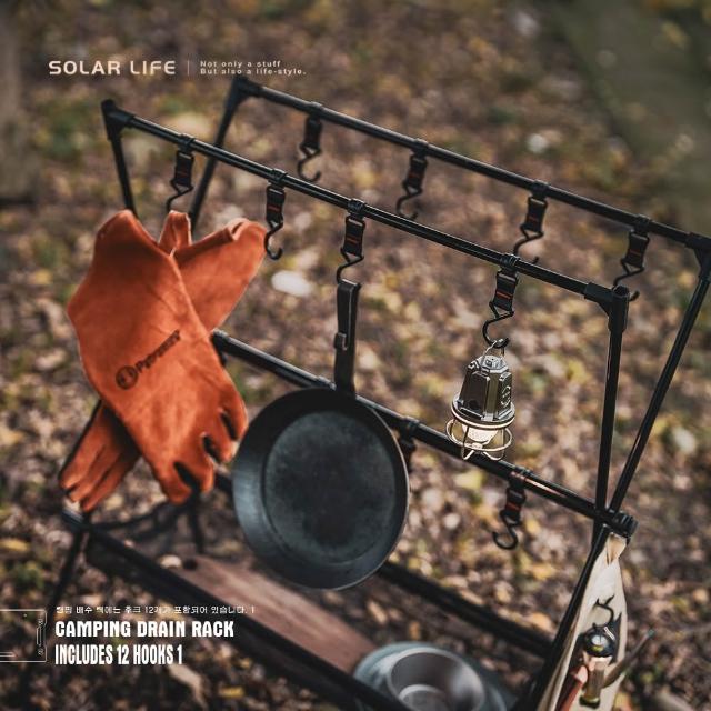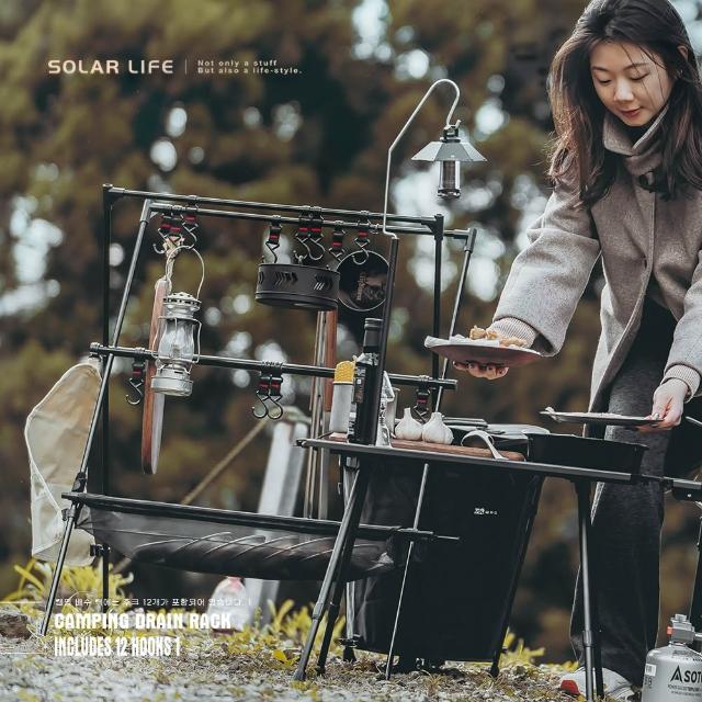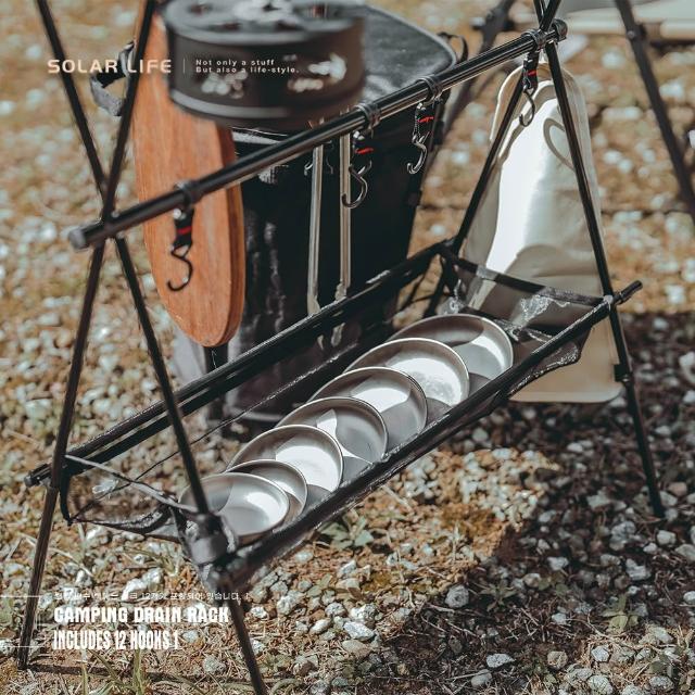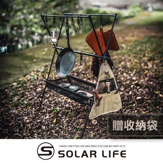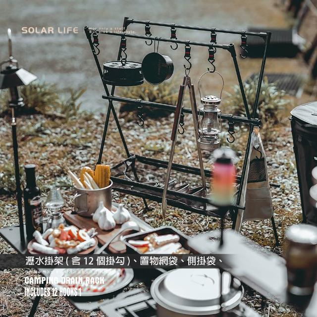索樂生活Solar Life 索樂生活 露營瀝水掛架含12掛勾 露營置物X掛架 吊掛A字架 餐具三角架 物架晾曬網 三角架掛袋
