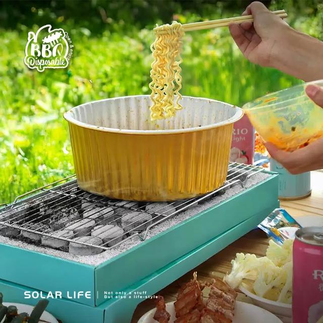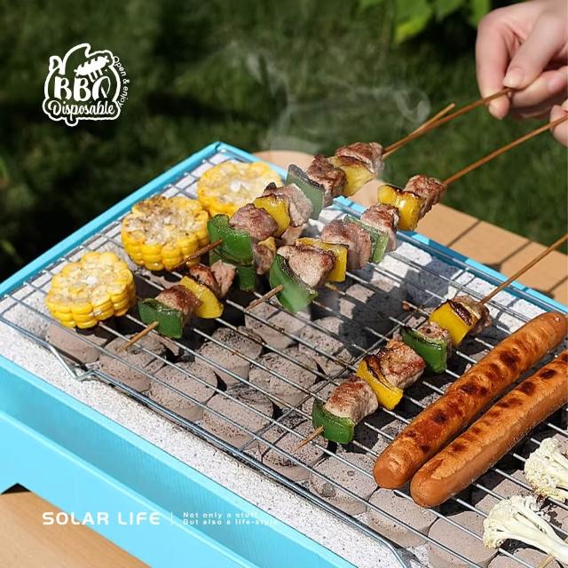 索樂生活Solar Life 一次性烤肉架加大款42x24cm 贈50顆果木炭 中秋烤肉爐 露營燒烤架 簡易烤肉架 便