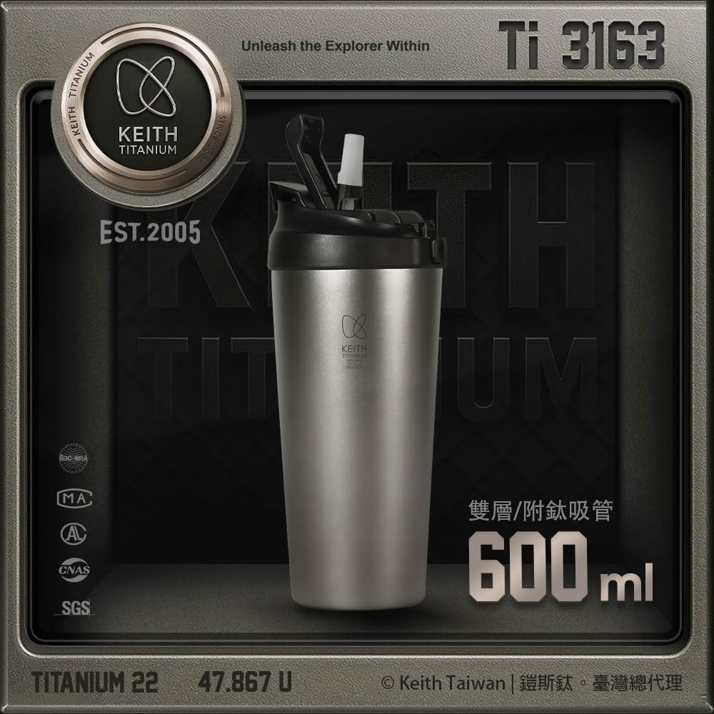 Keith鎧斯鈦真空雙飲保溫杯(附鈦吸管) 600ml / Ti3163 吸管杯 純鈦保溫杯 環保水壺 真空隨身杯