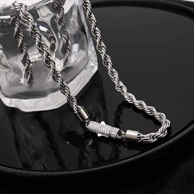 MIGNOLO重工圓扣麻花鍊 粗6MM 鈦鋼項鍊 粗項鍊
