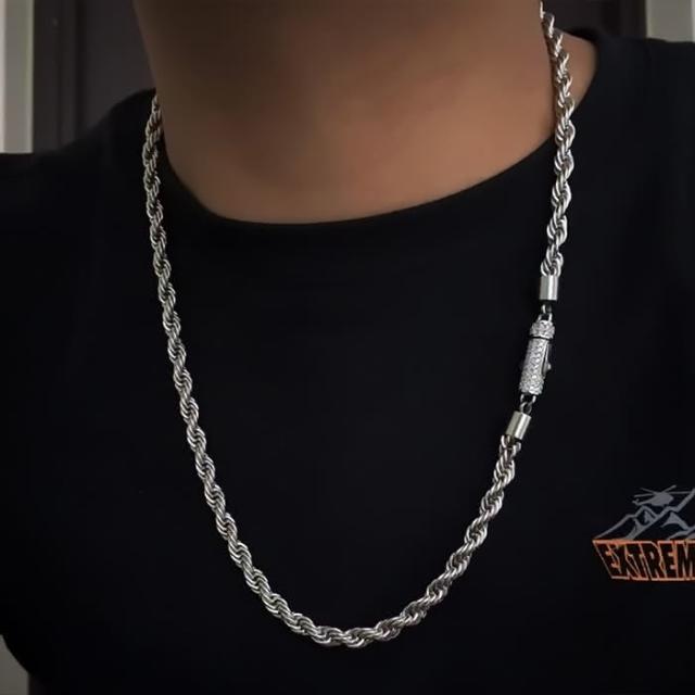 MIGNOLO重工圓扣麻花鍊 粗6MM 鈦鋼項鍊 粗項鍊