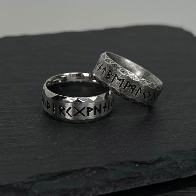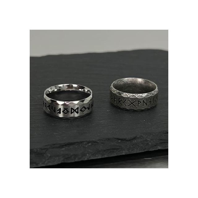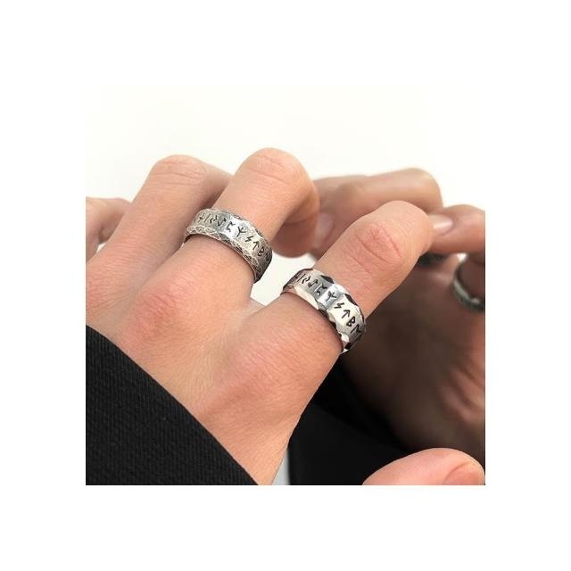 MIGNOLO盧恩符文戒指 鈦鋼 古銀 做舊 嘻哈戒指 復古